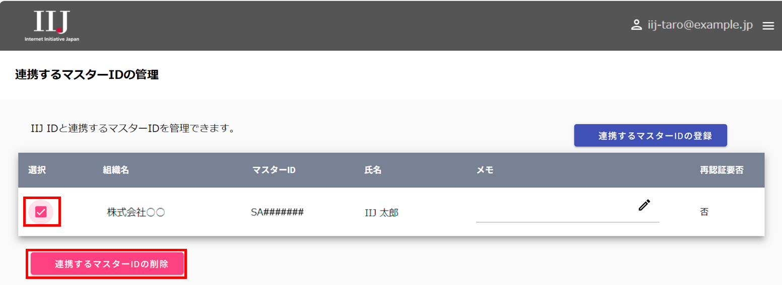 再度連携する場合は、改めてIIJ IDとマスターIDを連携してください。