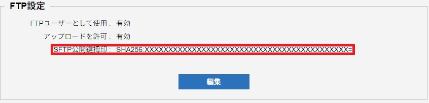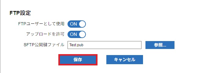 | SFTP公開鍵ファイル | 「参照」をクリックし、作成した公開鍵をアップロードします |