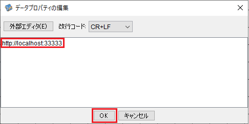 16.「https://localhost:33333」を入力し、「OK」をクリックします。