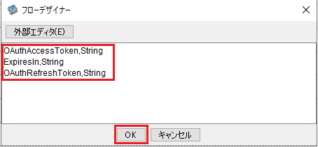 9.以下の内容をコピーし、「フローデザイナー」画面に貼り付け、「OK」をクリックします。