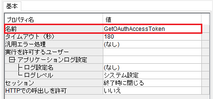 2.「名前」に任意の名前(例:GetOAuthAccessToken)を入力し、保存します。