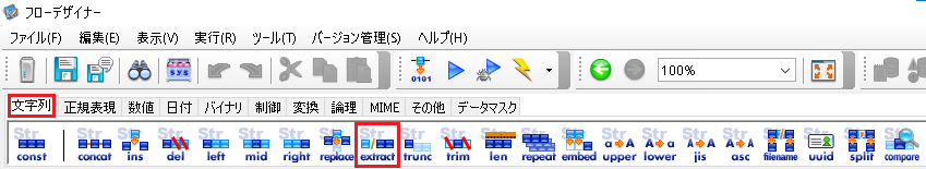13.「ExtractString」マッパー関数(ExtractString1)を作成するために、パレットの「文字列」をクリックし、「ExtractString」マッパー関数をドラッグアンドドロップします。