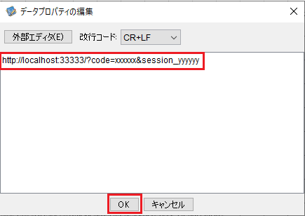 4.「8.認証レスポンスを取得する」で取得したURLを貼り付け、「OK」をクリックします。
