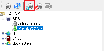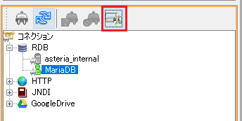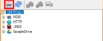 1.フローデザイナーでサーバに接続し、コネクションの作成ボタンをクリックします。