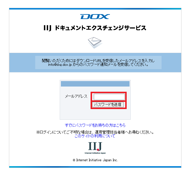 このURLへアクセスすると、送信時に添付ファイルとして指定したファイルをDOXからダウンロードすることができます。