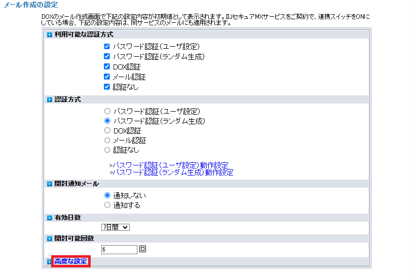 - この設定は IIJセキュアMXサービスとDOXの連携機能で送られたメールには反映されません