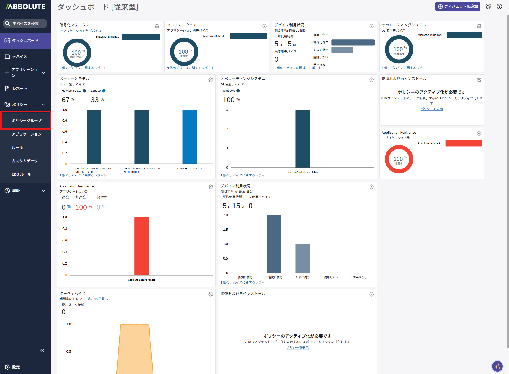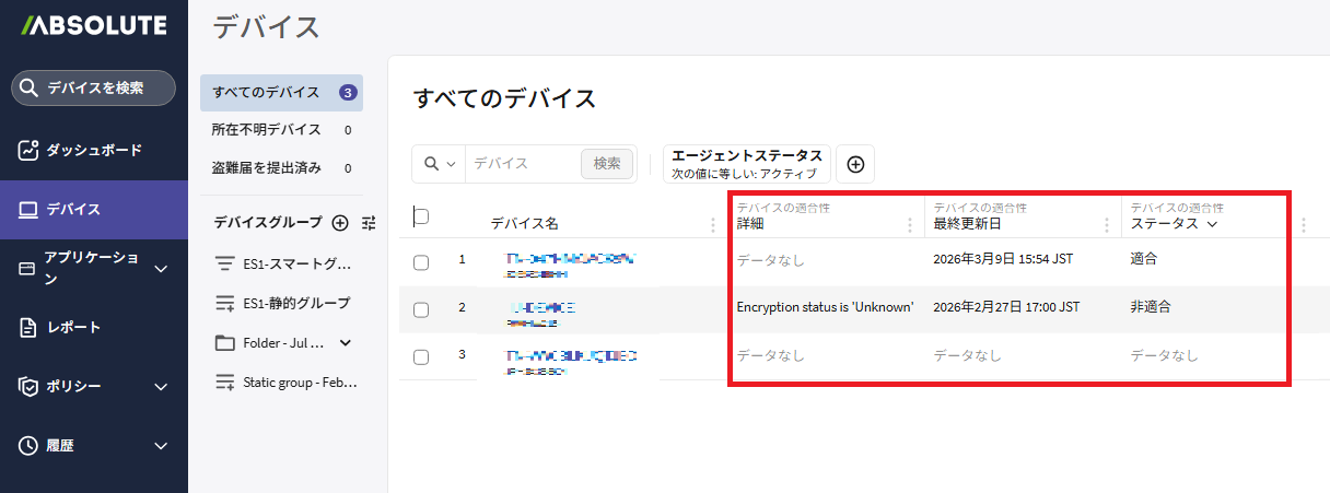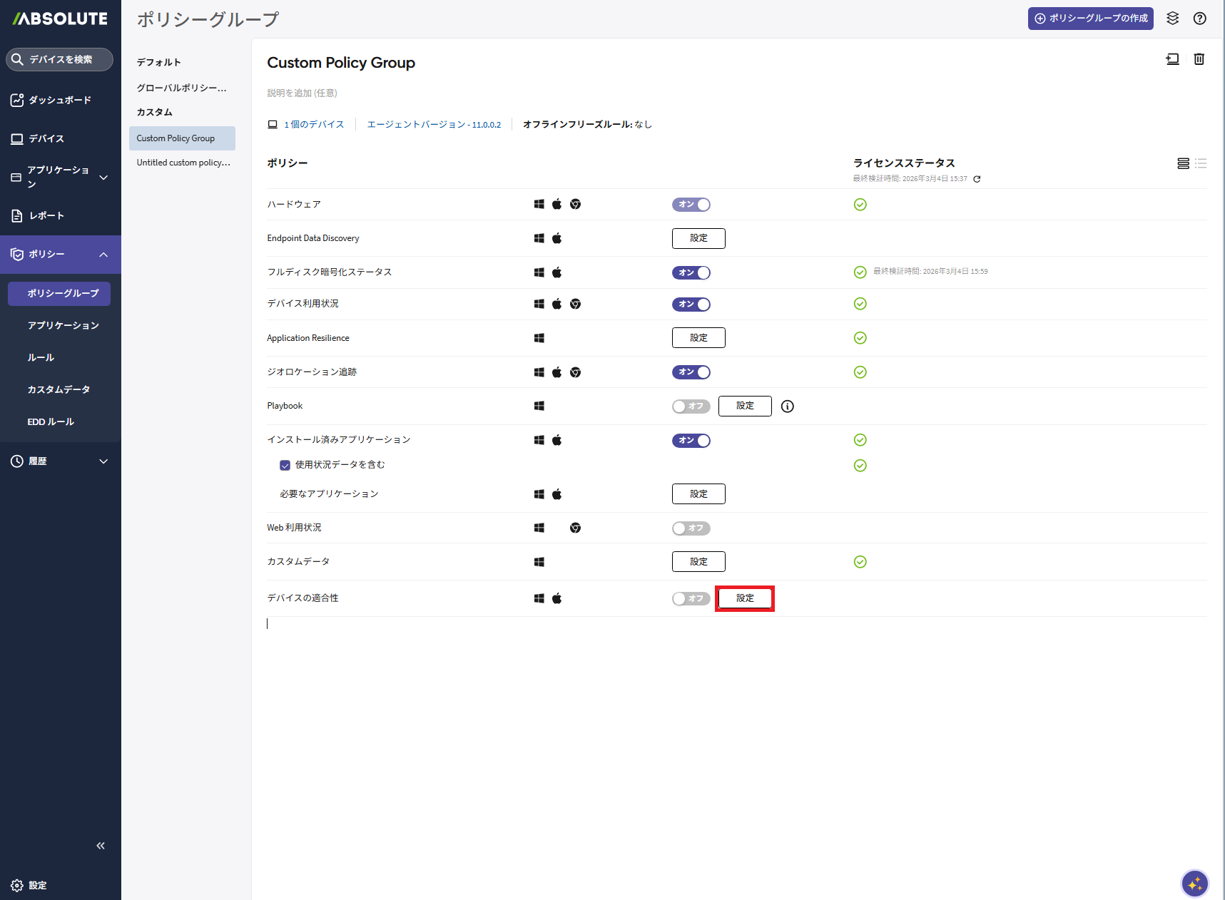 「デバイスの適合性」ポリシーがアクティブ化されます。
