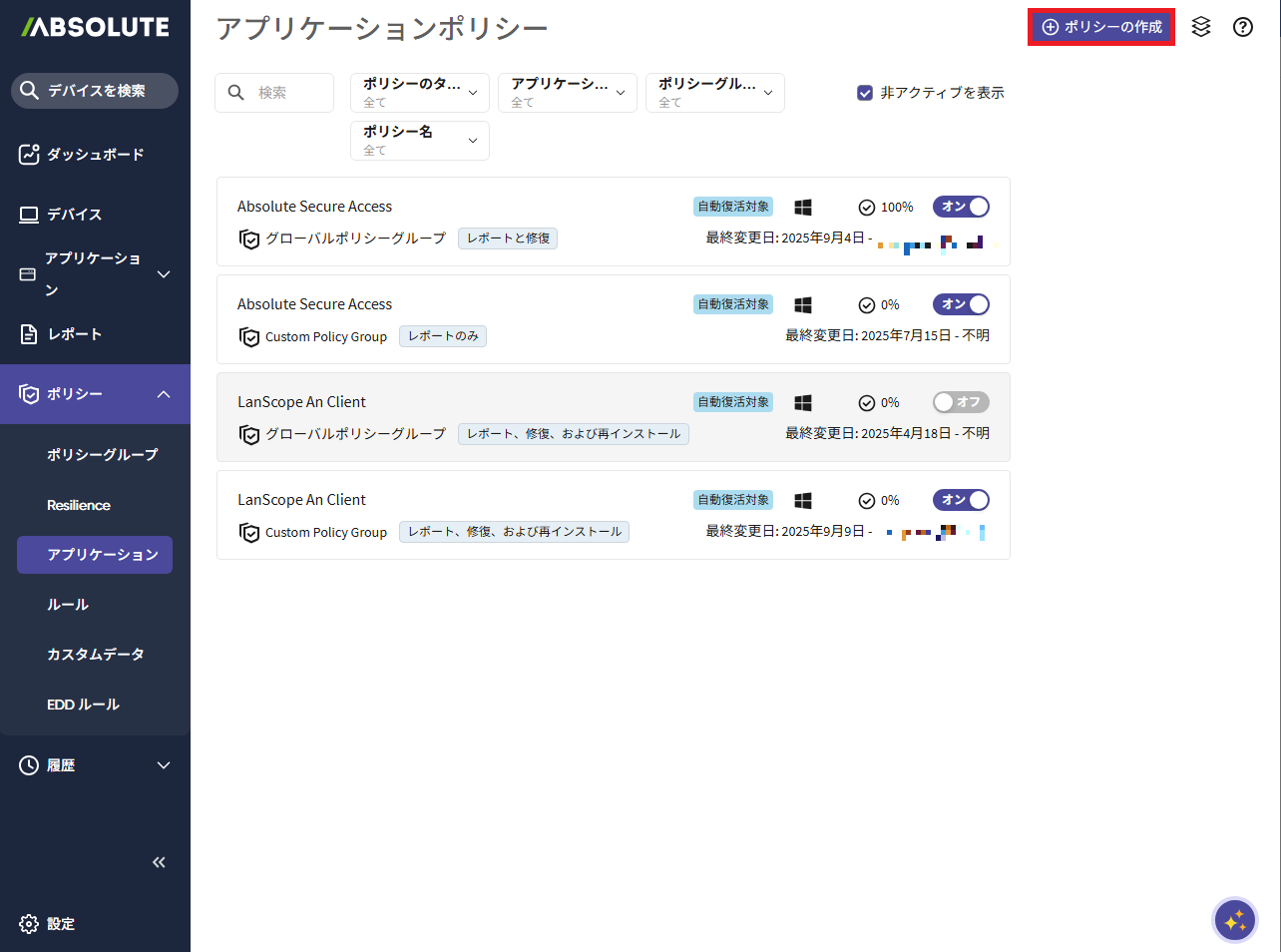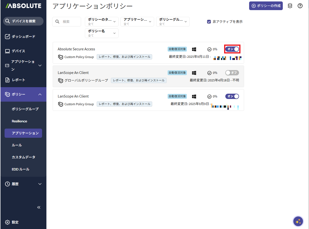 以上で、Application Resilienceポリシーのアクティブ化は完了です。