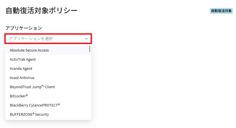 1.「ポリシー」メニューをクリックし、「アプリケーション」をクリックします。