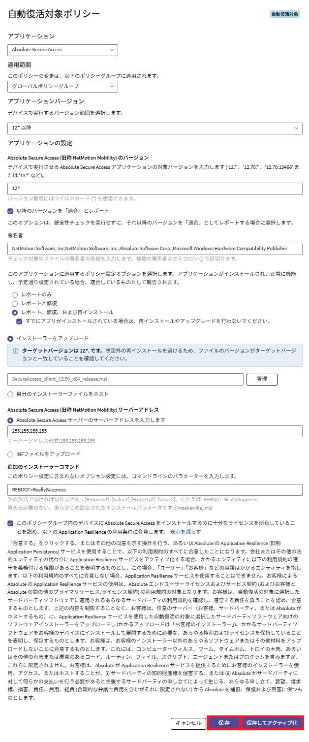 ポリシーの設定項目について詳しくは、「Application Resilienceポリシーを設定する」をご覧ください。