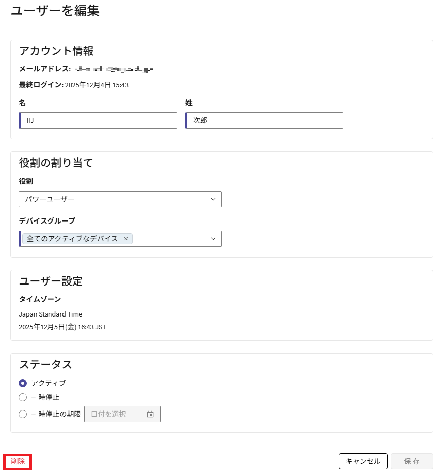 「ユーザーを編集」画面が表示されます。