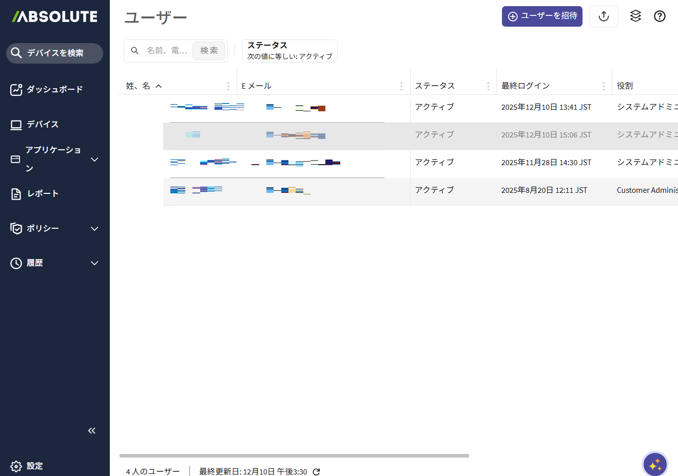 「Secure Endpointコンソール」のユーザを管理するメニューです。詳しくは、「