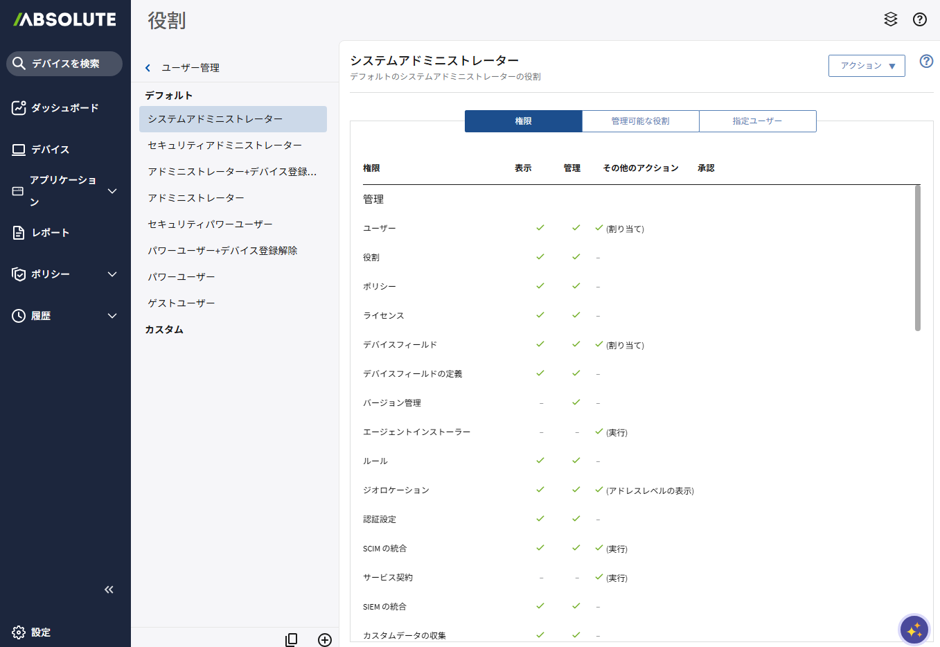 管理可能な役割を設定する
