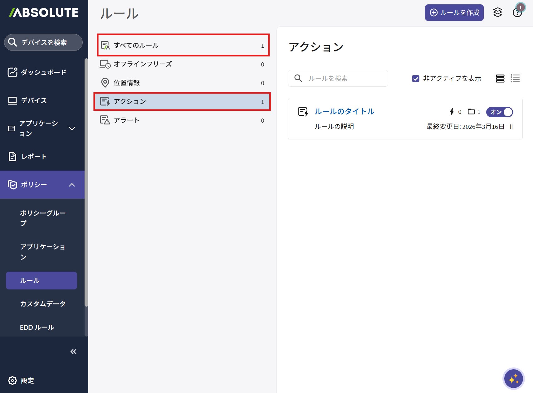5.「すべてのルール」または「アクション」をクリックし、ルールが作成されたことを確認します。