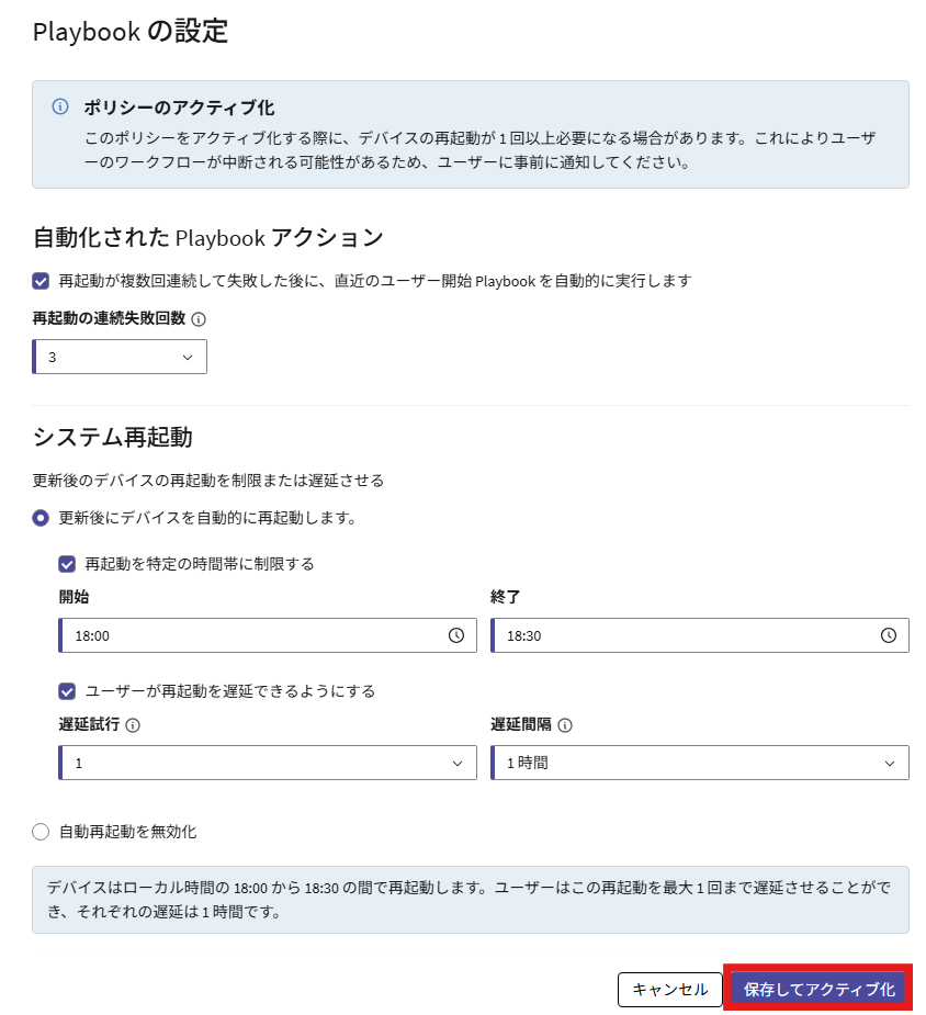 以上でPlaybookポリシーをアクティブ化は完了です。