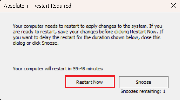 5.デバイス再起動後に再度、再起動を要求する画面が表示されたら、「Restart Now」をクリックします。再起動の要求画面が表示されるまで時間がかかる場合があります。