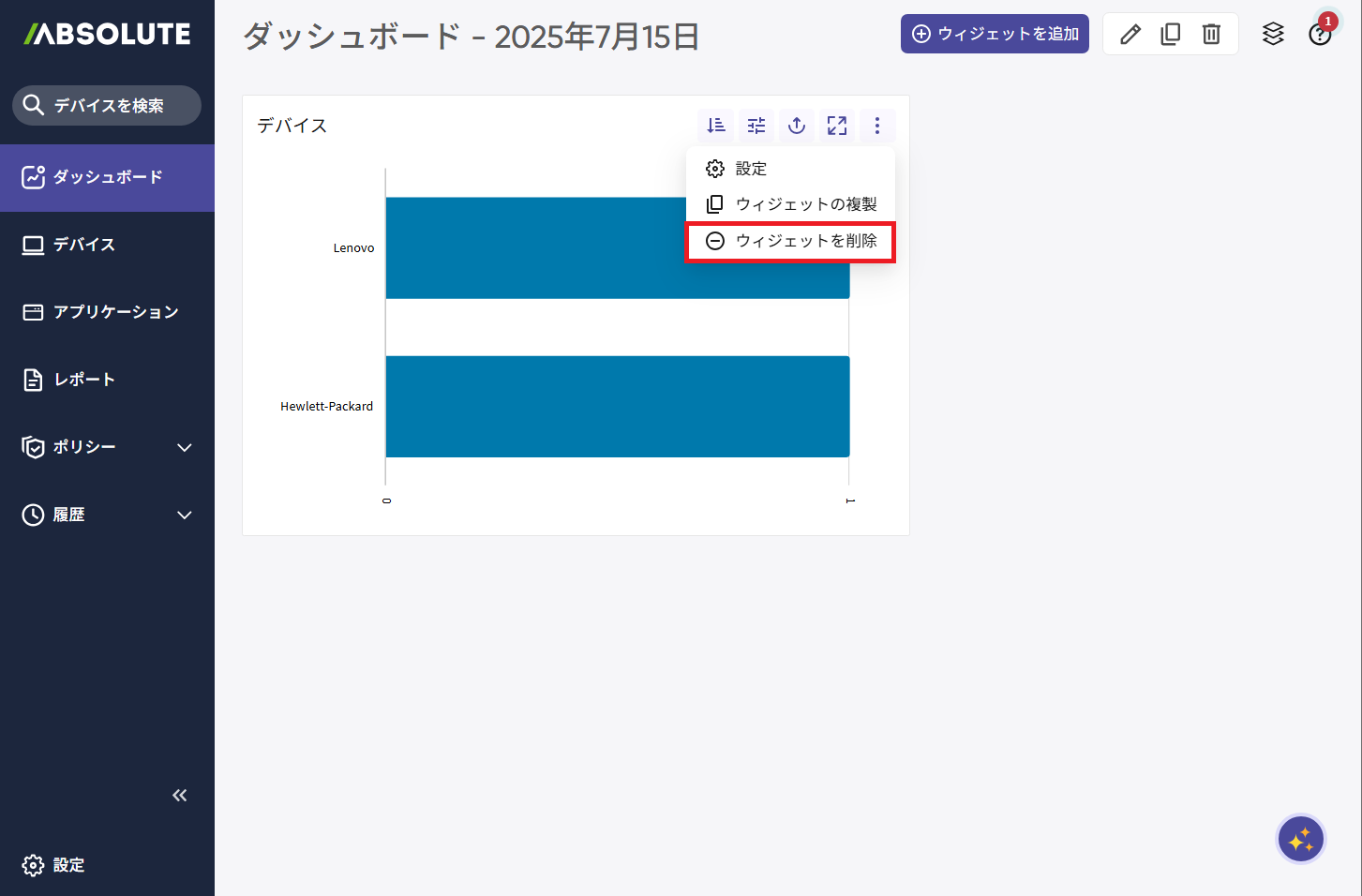 」をクリックし、表示されるプルダウンメニューから「ウィジェットを削除」を選択します。
