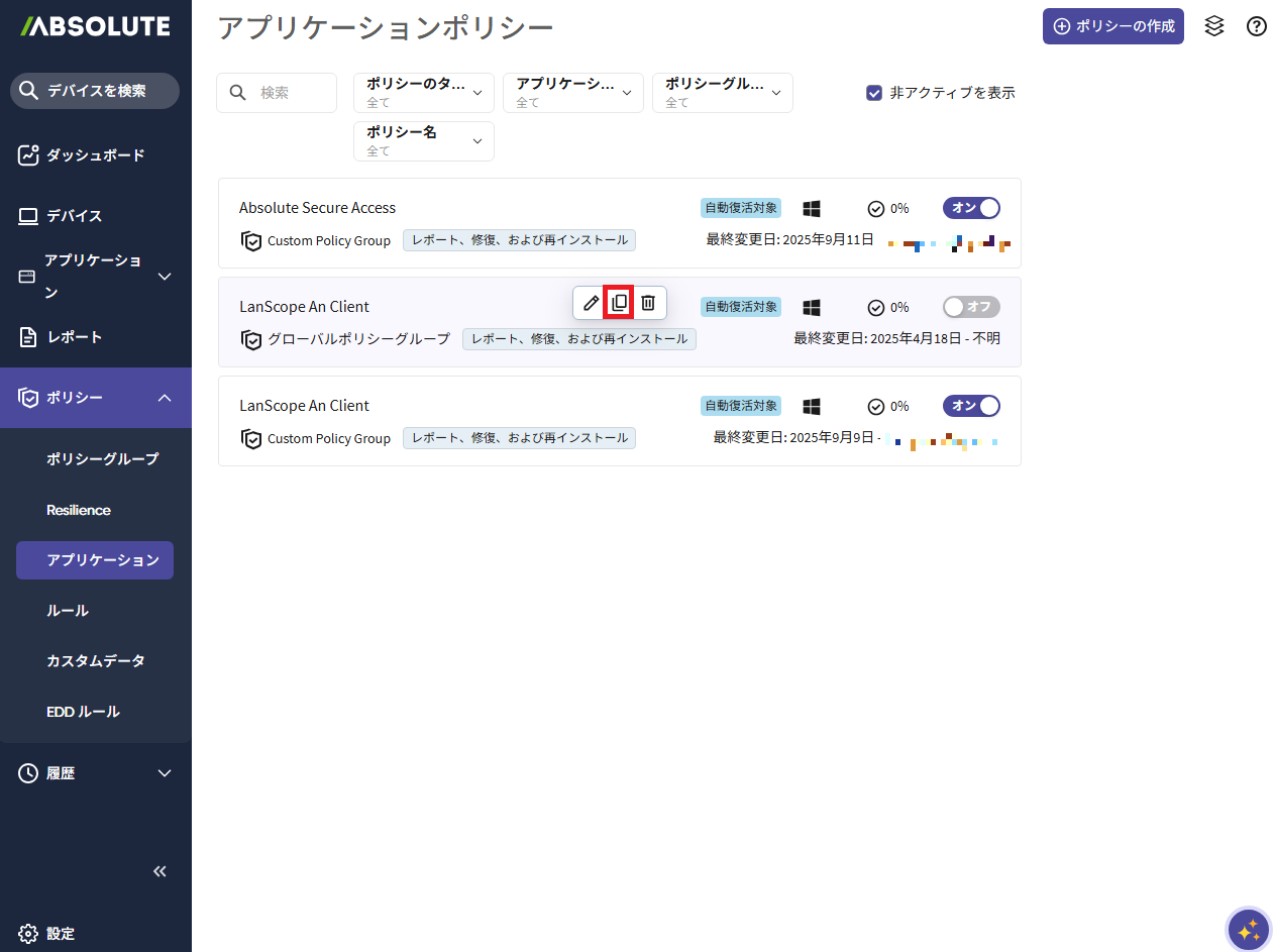 以上で、Application Resilienceポリシーのコピーは完了です。