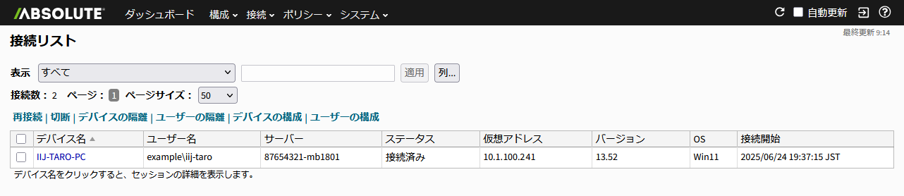 4.切断したデバイスがリストから消えていることが確認できます。