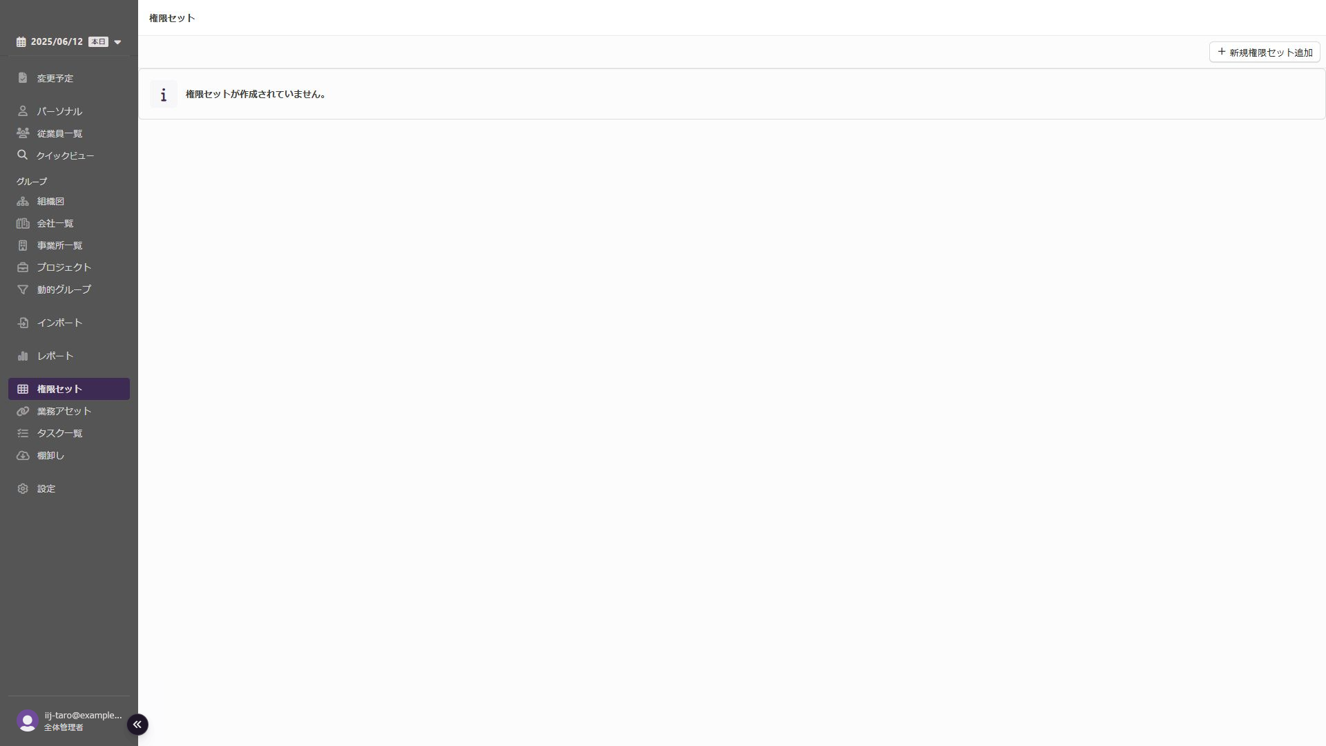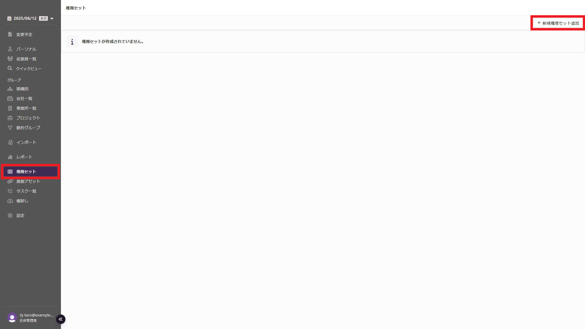 1.「権限セット」をクリックし、「+新規権限セット追加」をクリックします。