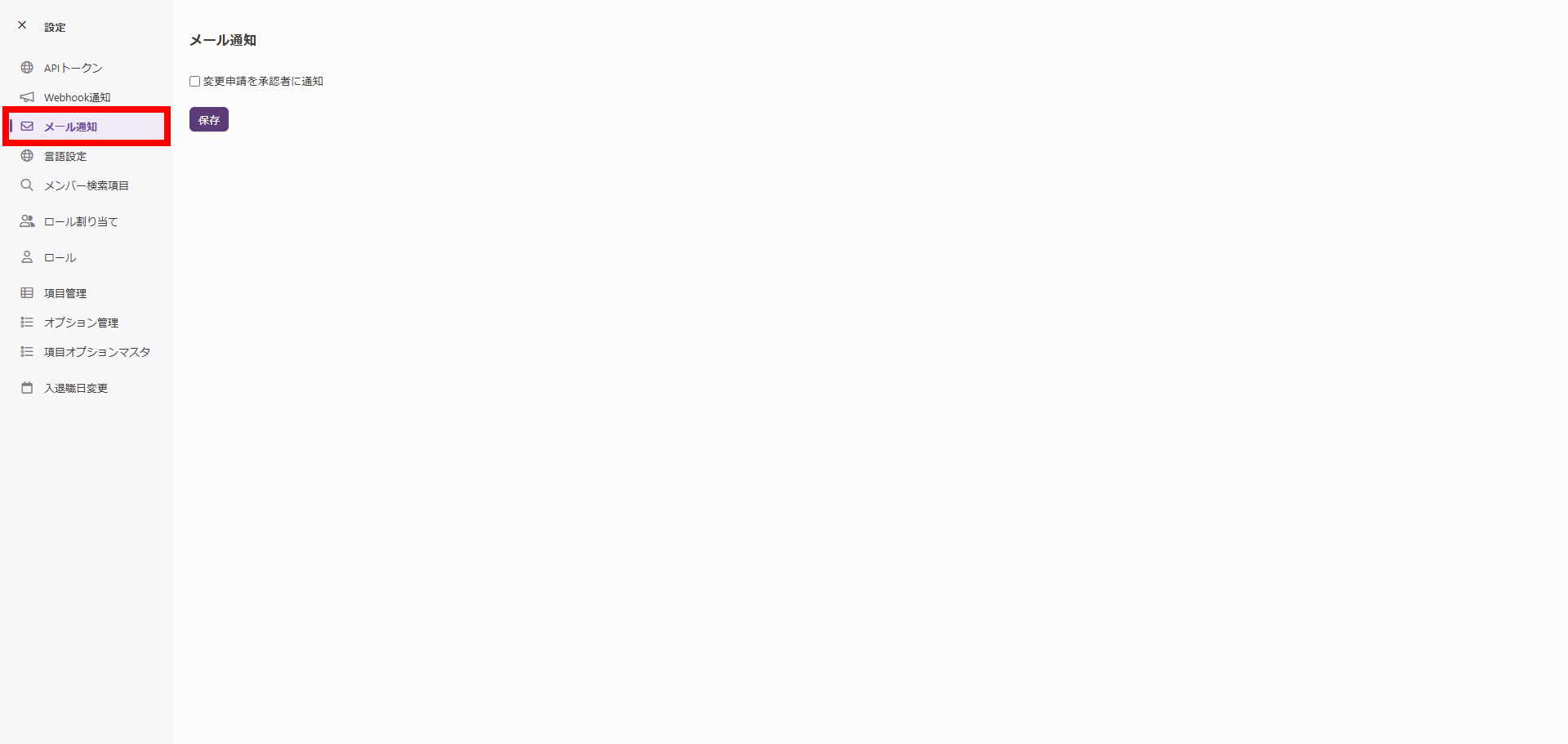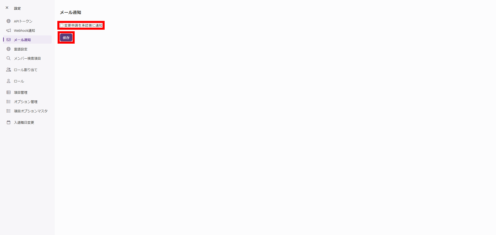 3.「変更申請を承認者に通知」の項目をチェックし、「保存」をクリックします。