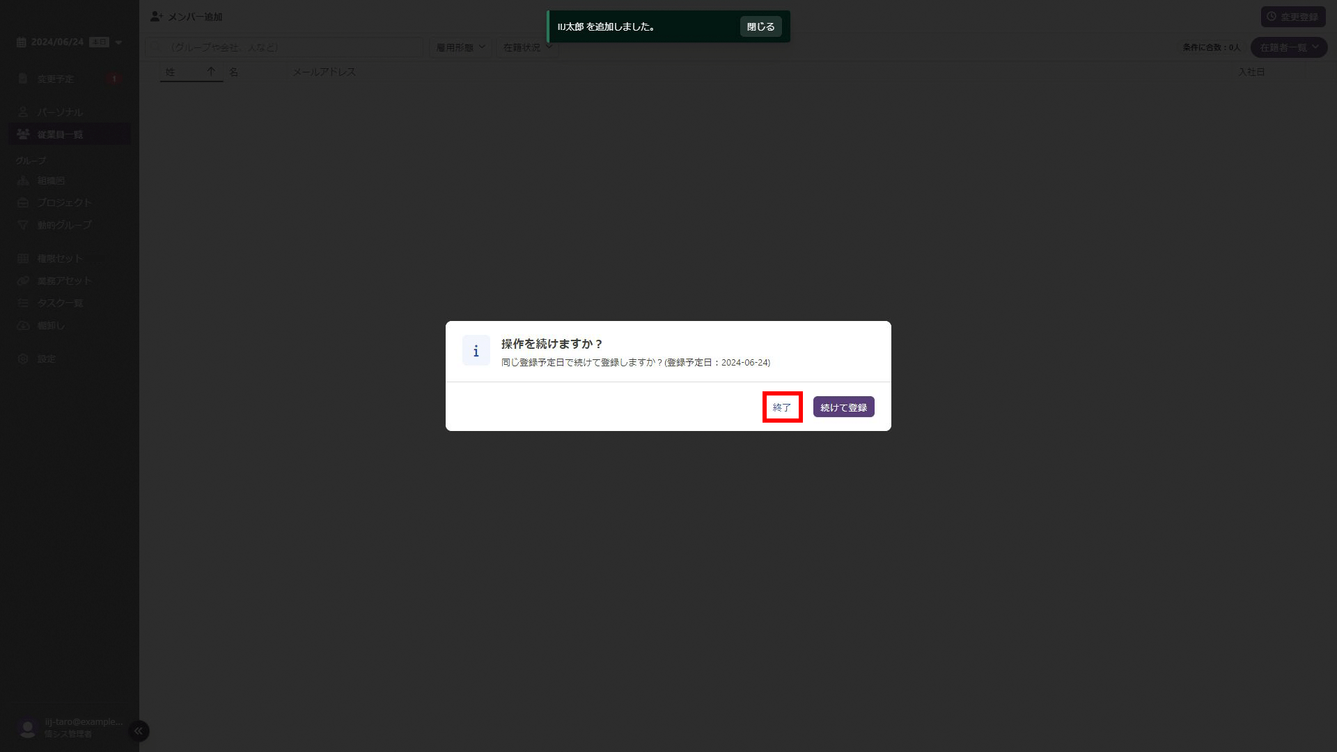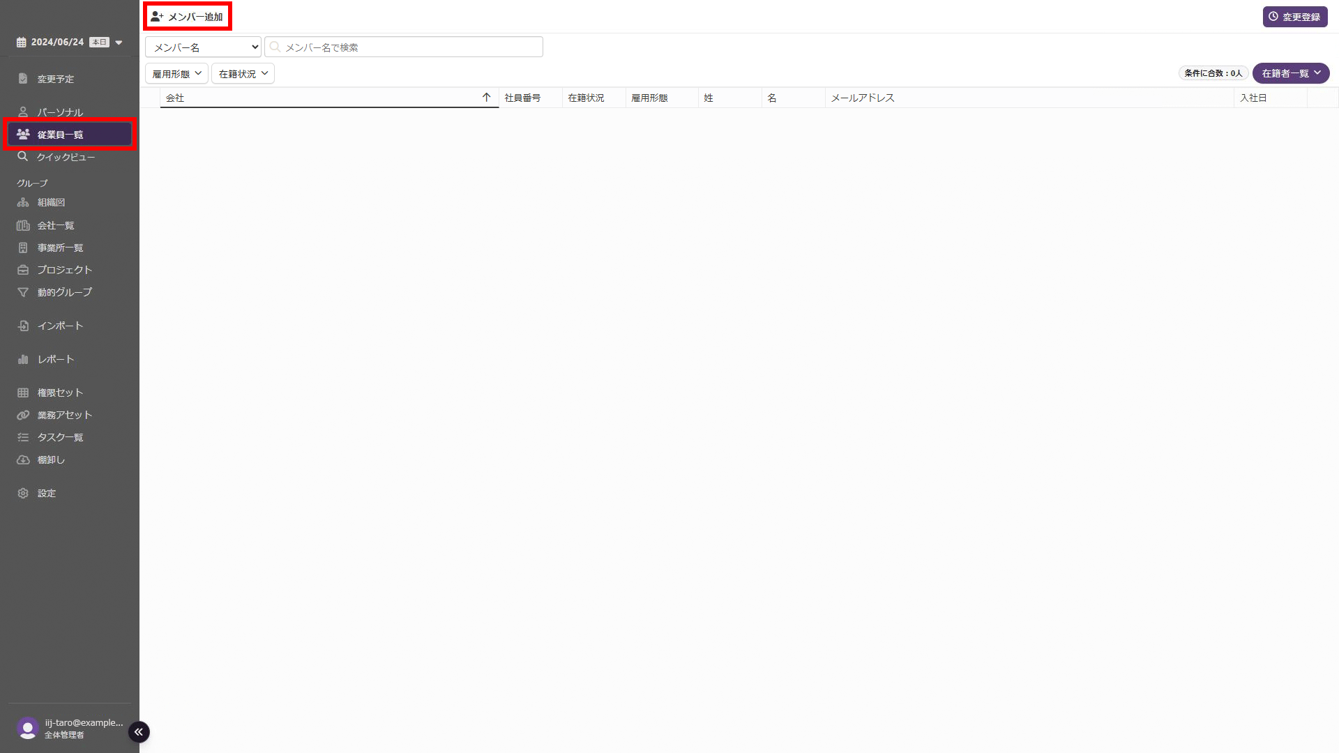 9.「従業員一覧」をクリックし、メンバーが追加されたことを確認します。