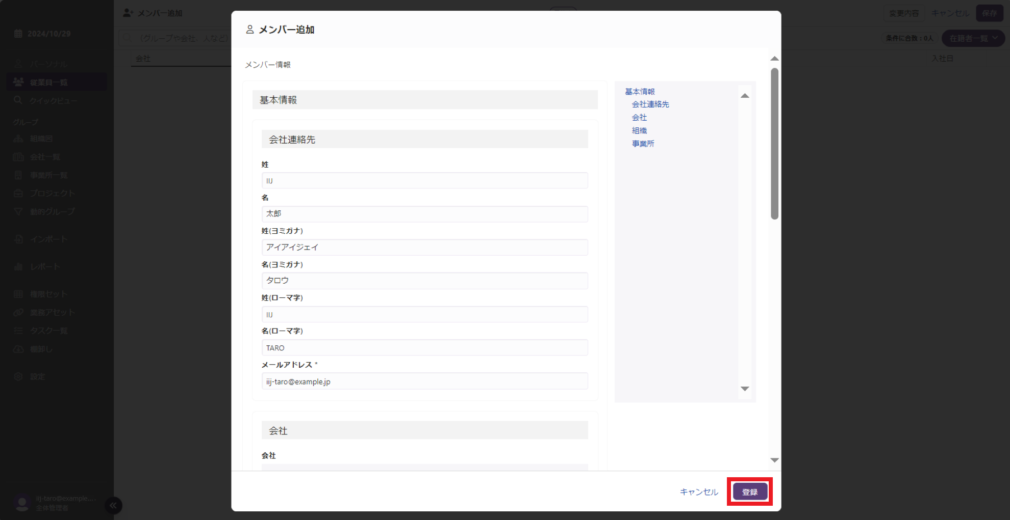 メンバー情報入力時、必ず「会社」項目を設定してください。