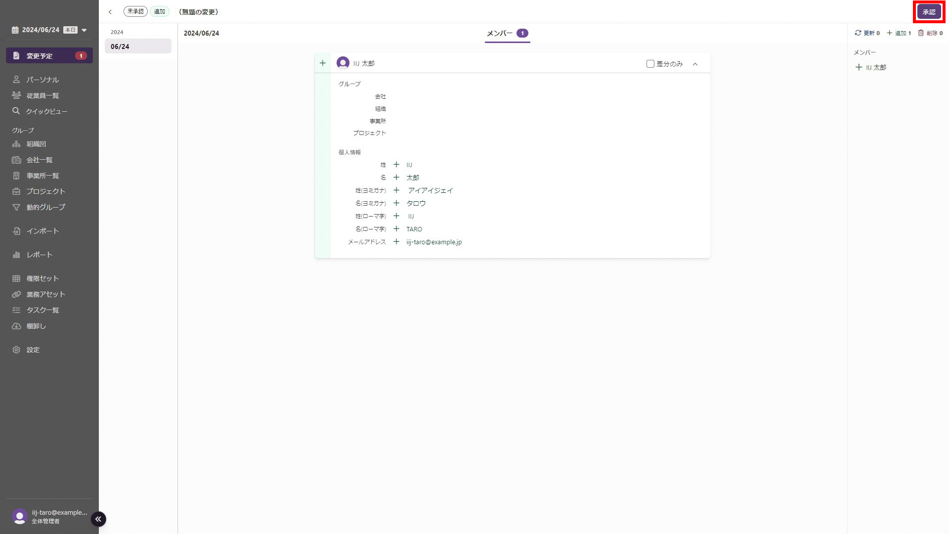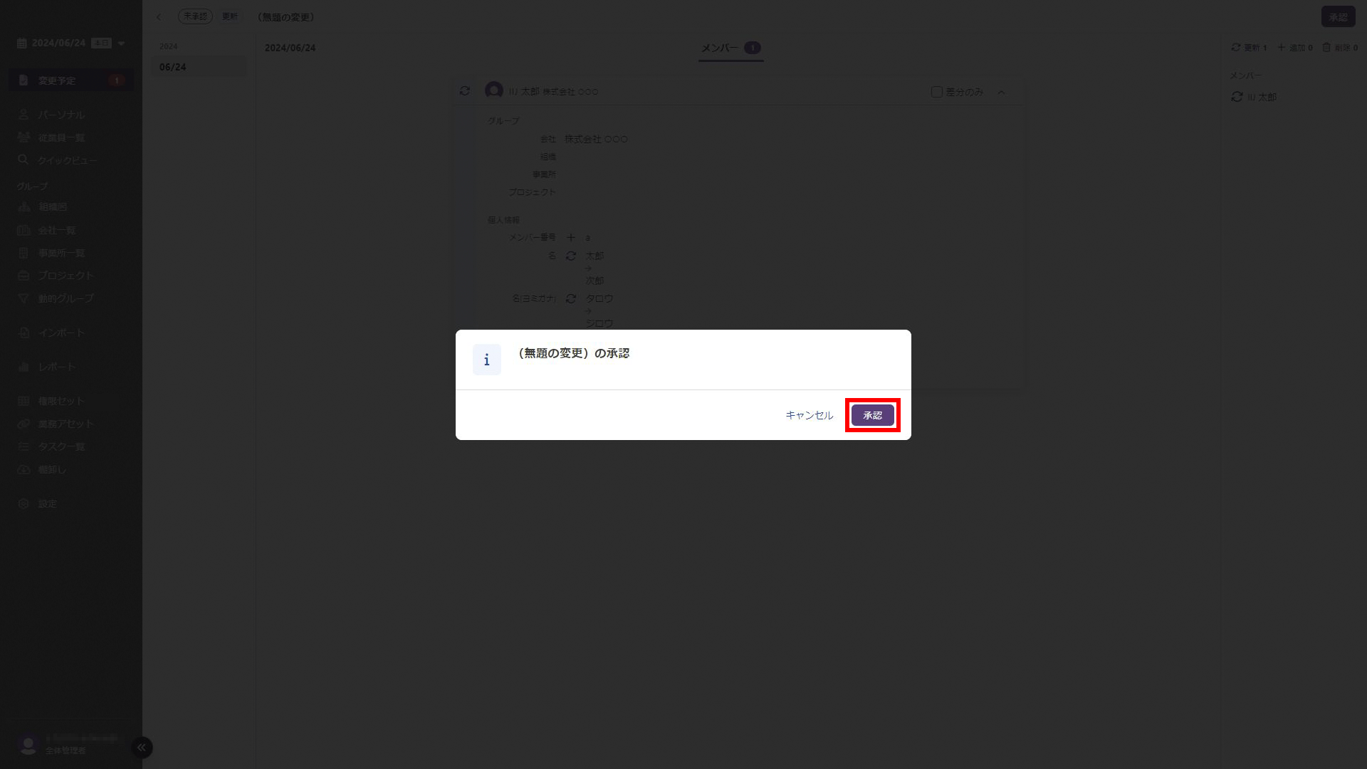 5.「変更予定」をクリックし、追加するメンバーの行に表示されている「確認」を選択します。