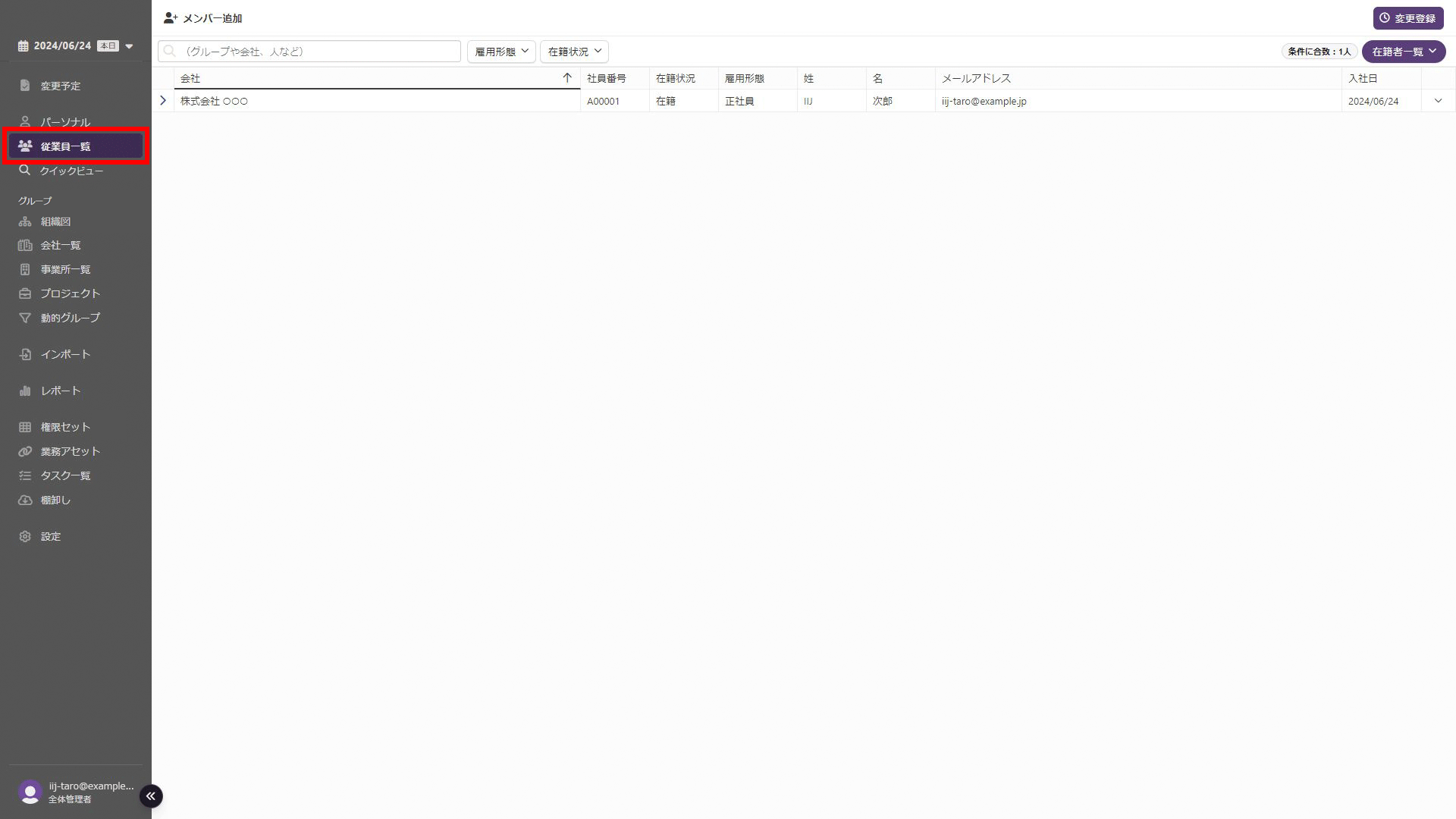 8.「従業員一覧」をクリックし、メンバーの登録情報が変更されたことを確認します。