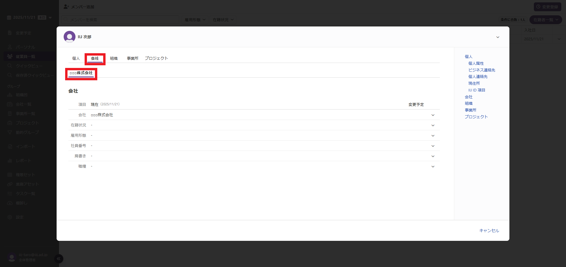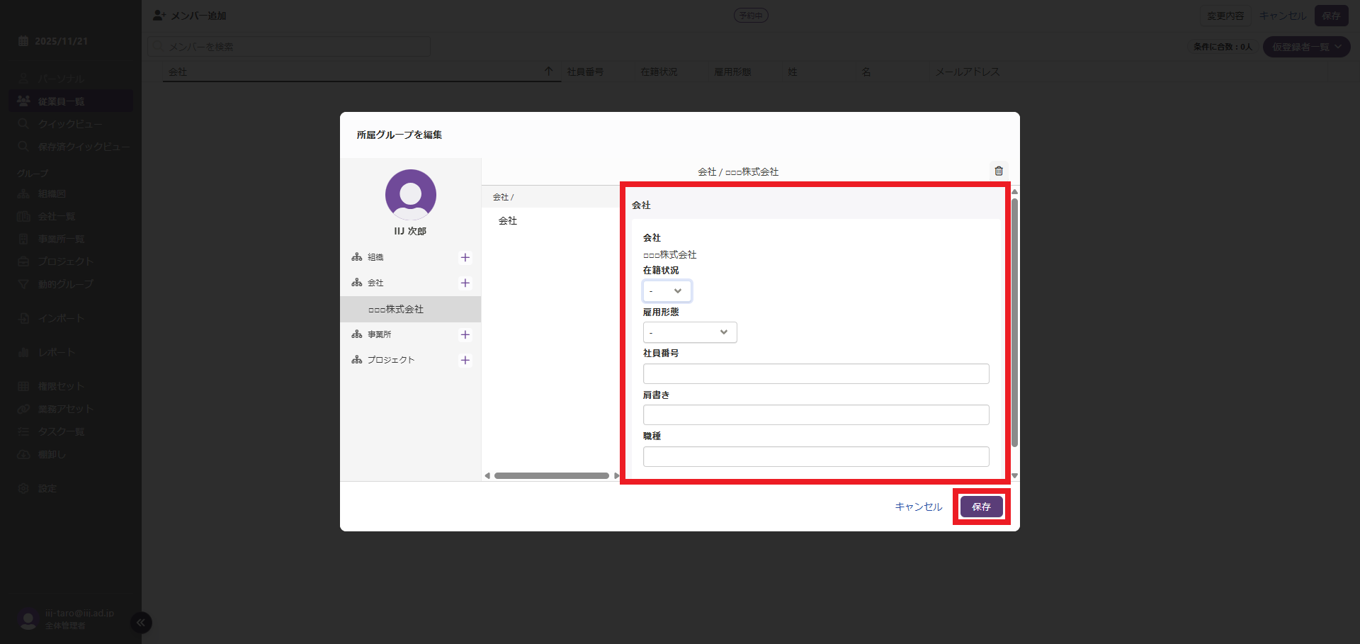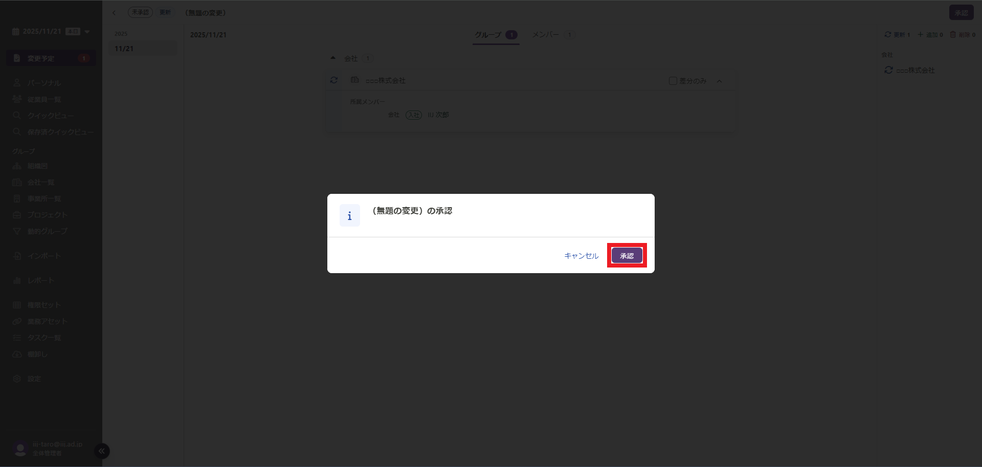以上で、メンバーの所属グループ(組織、会社、事業所、プロジェクト)の変更は完了です。