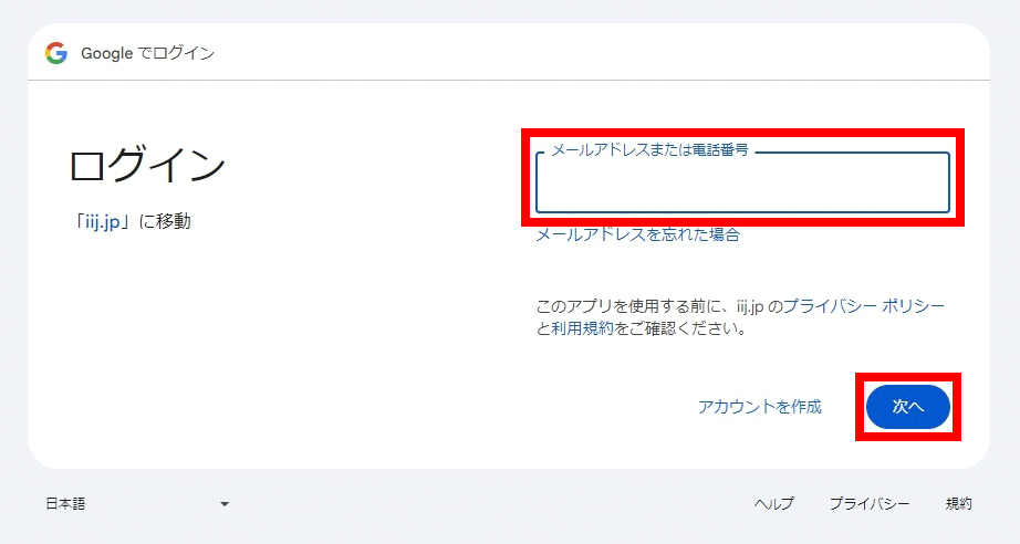 Googleアカウント入力画面が表示されます。