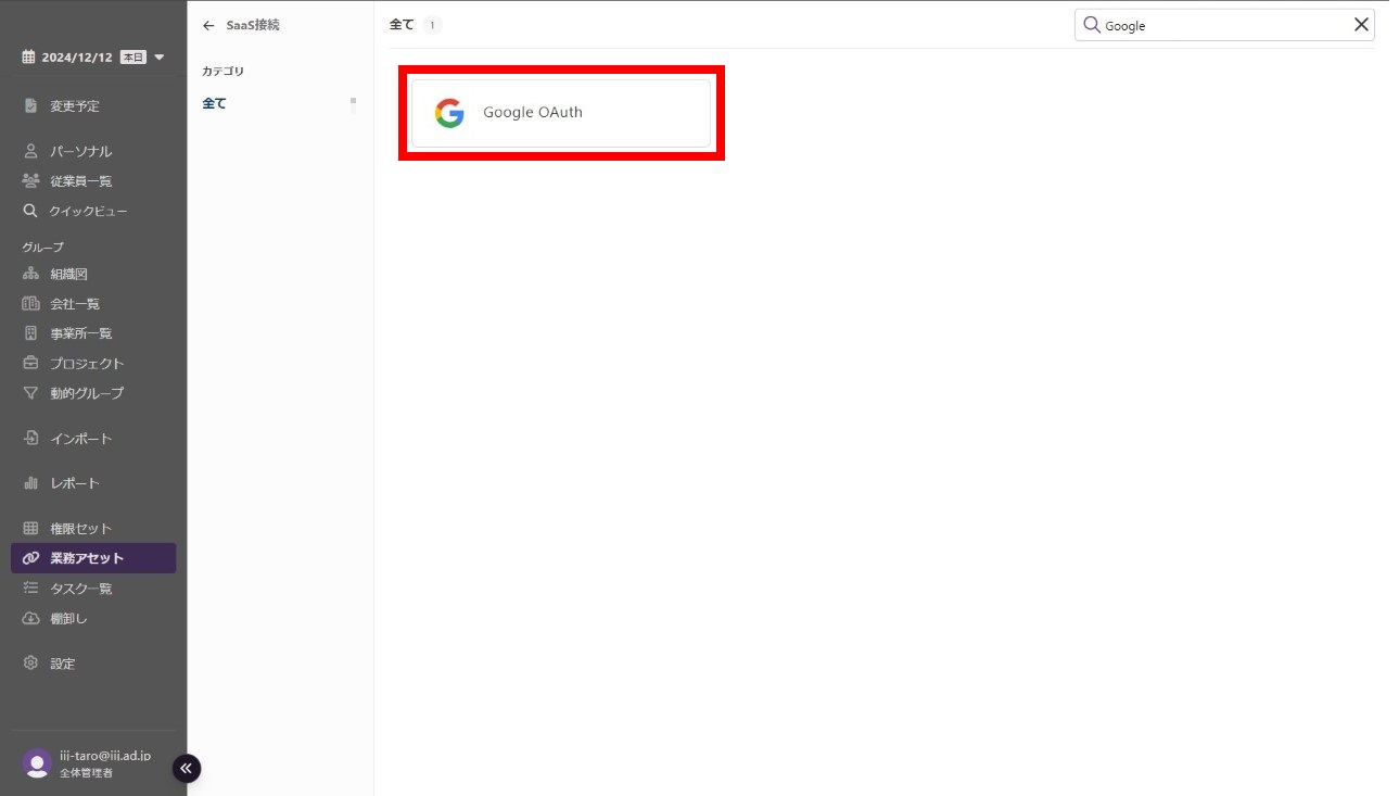 3.「SaaS接続」画面で「Google OAuth」をクリックします。