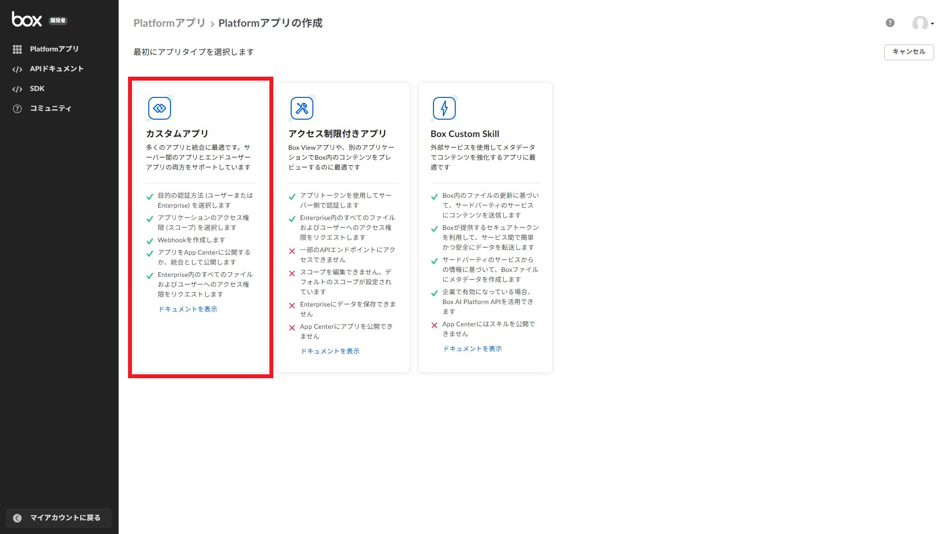 1.Boxにアクセスし、「開発者コンソール」をクリックします。