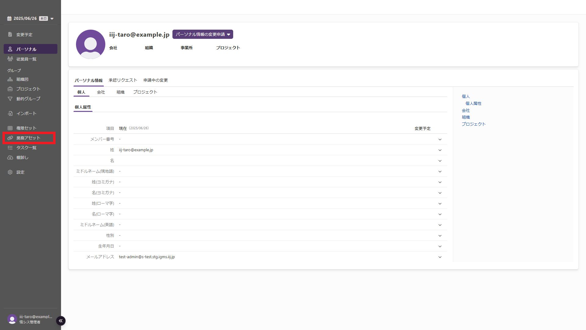 | 業務アセットID | 作成した業務アセットが持つ、テナント内で一意のIDを入力します |