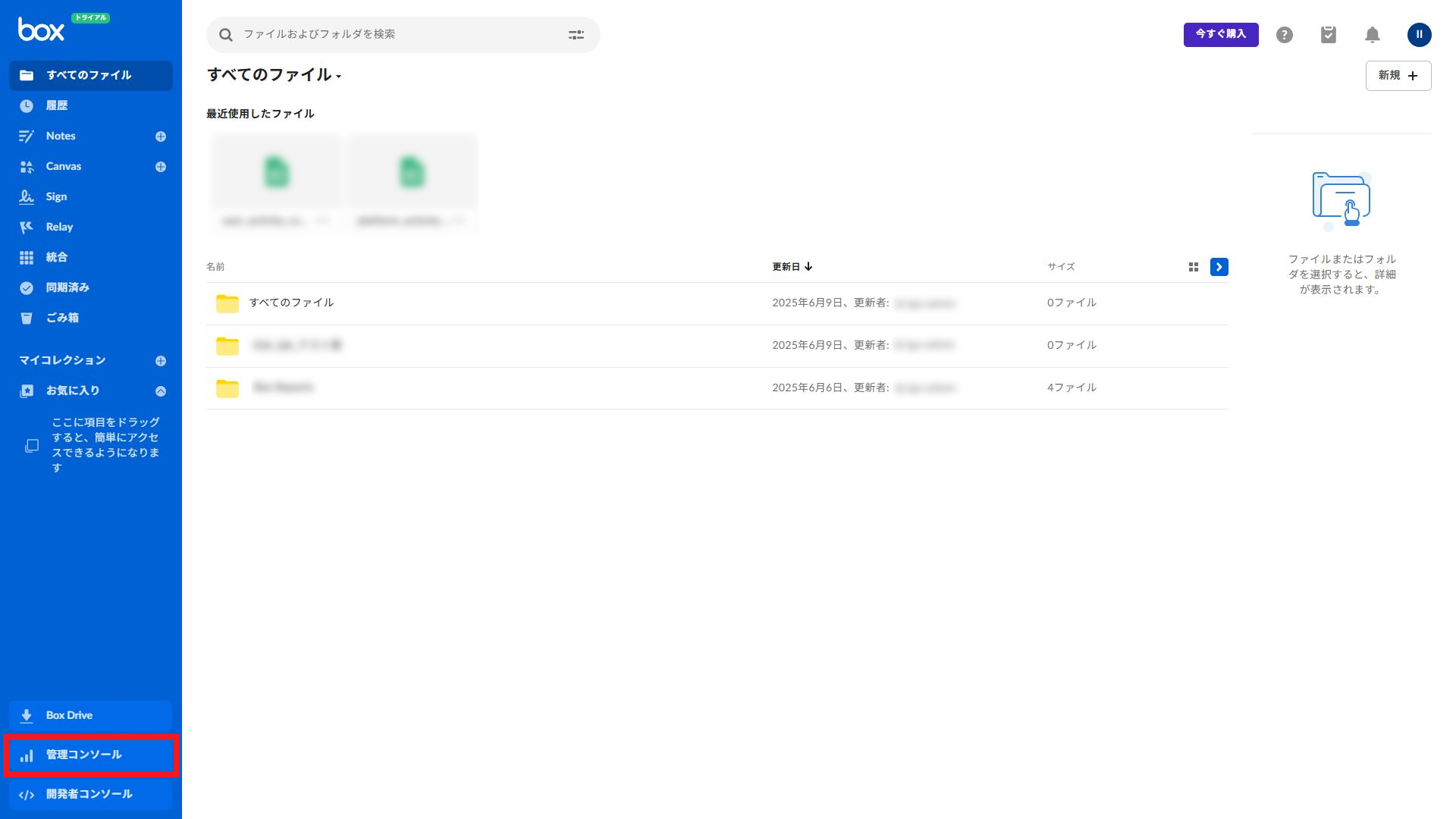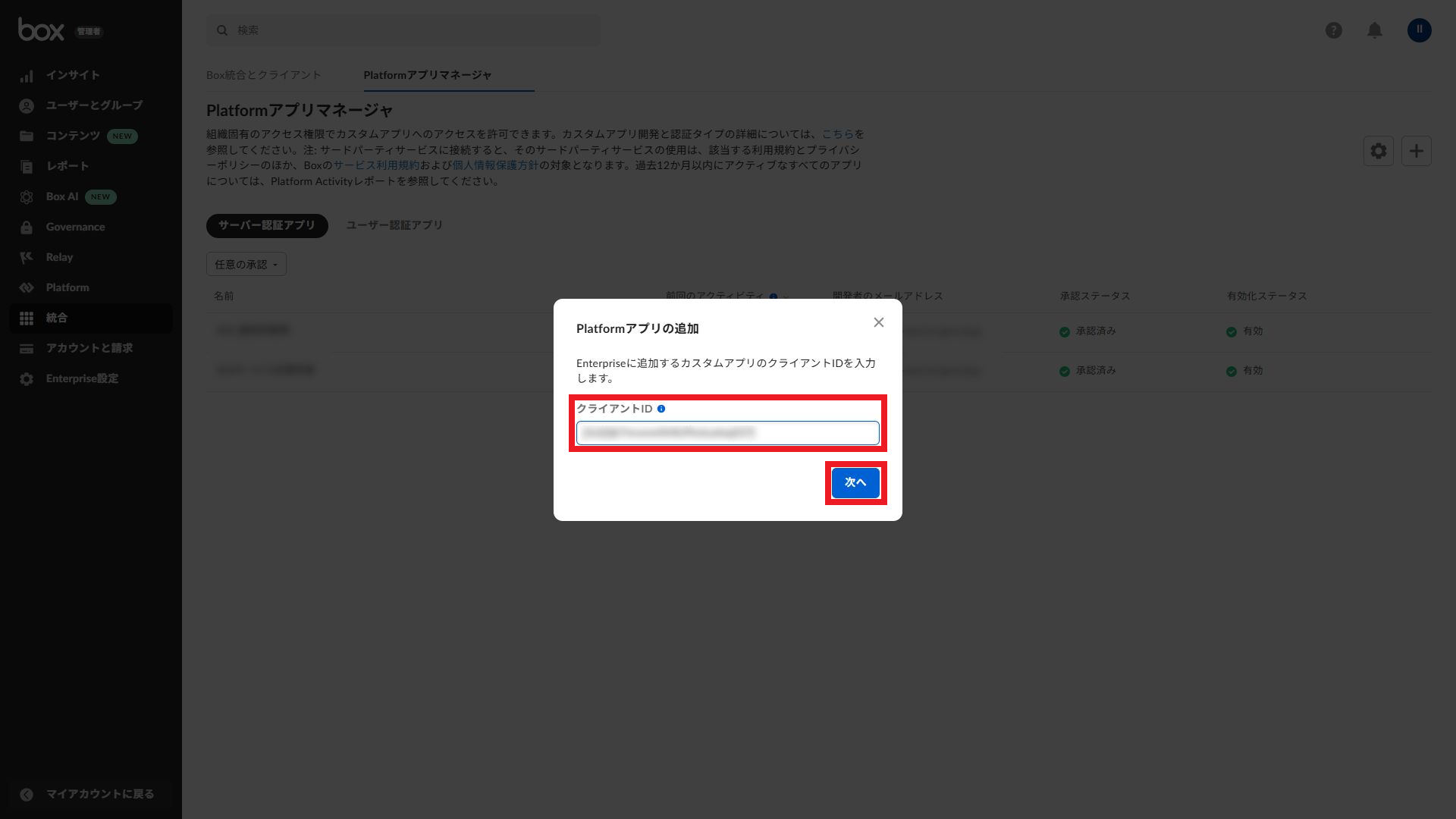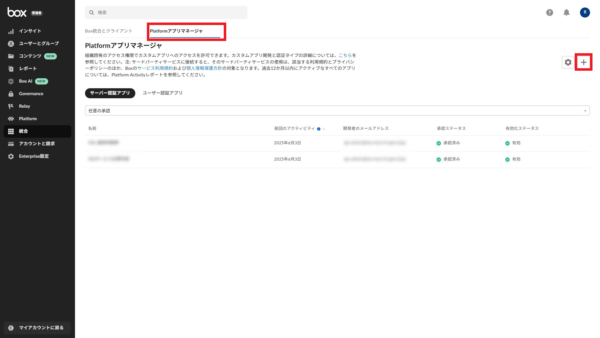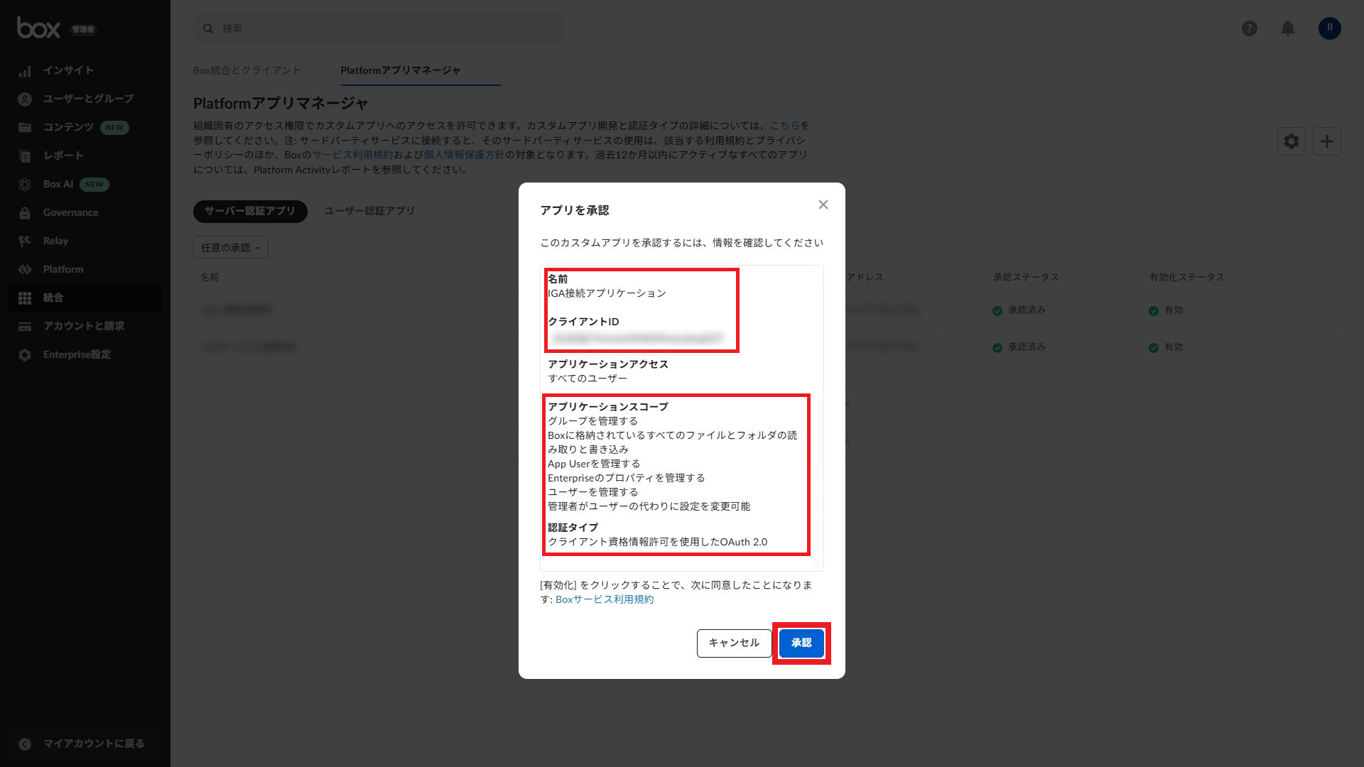 アプリケーションの承認はBoxの「管理コンソール」から実施することができます。