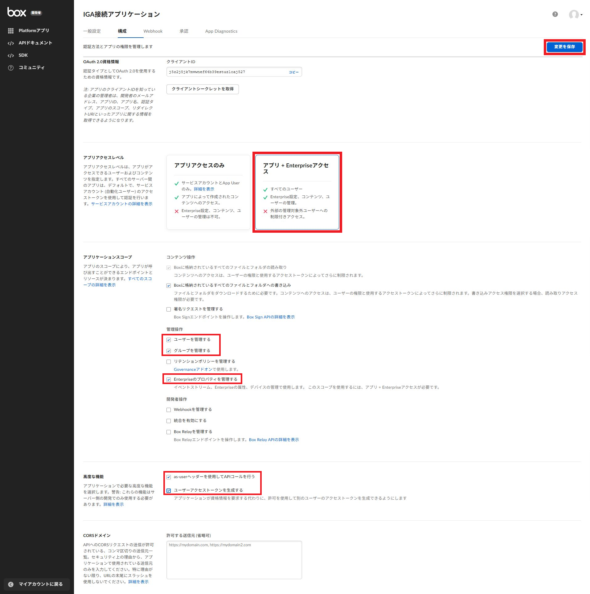 | アプリアクセスレベル | 「アプリ + Enterpriseアクセス」を選択します |