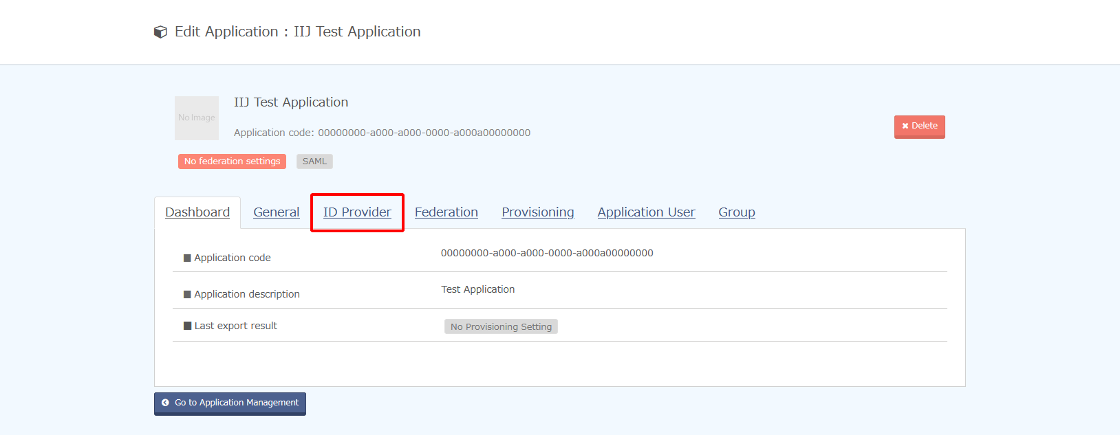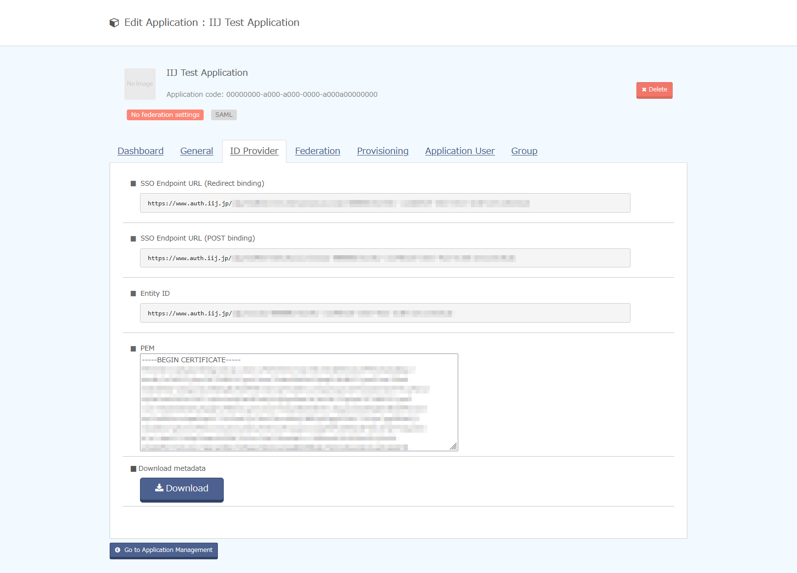 This section describes how to get information about an ID provider. Configure the setting for SP (linked service) of SAML Application as needed.