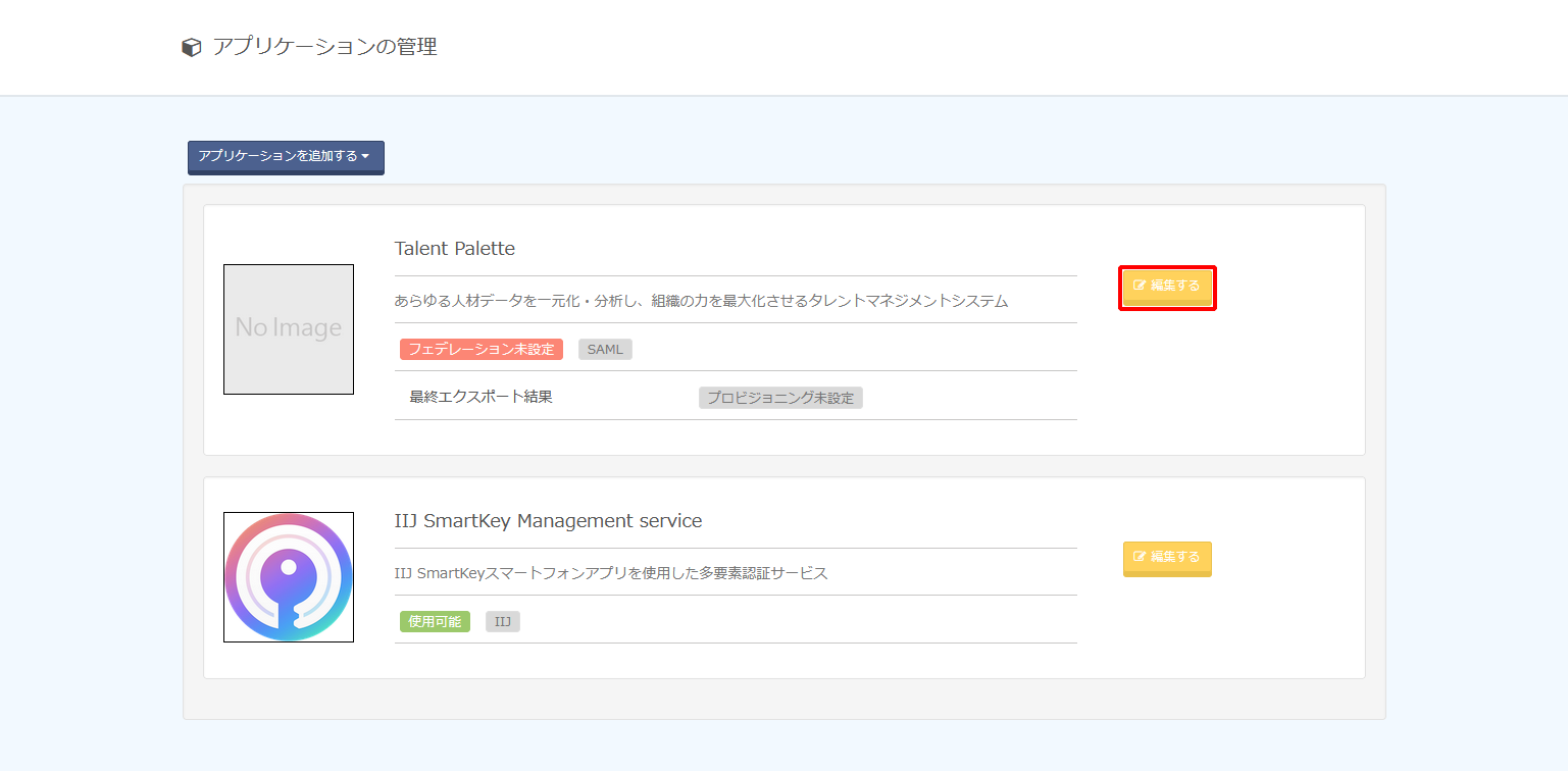 1. 作成されたSAMLアプリケーションの「編集する」をクリックします。