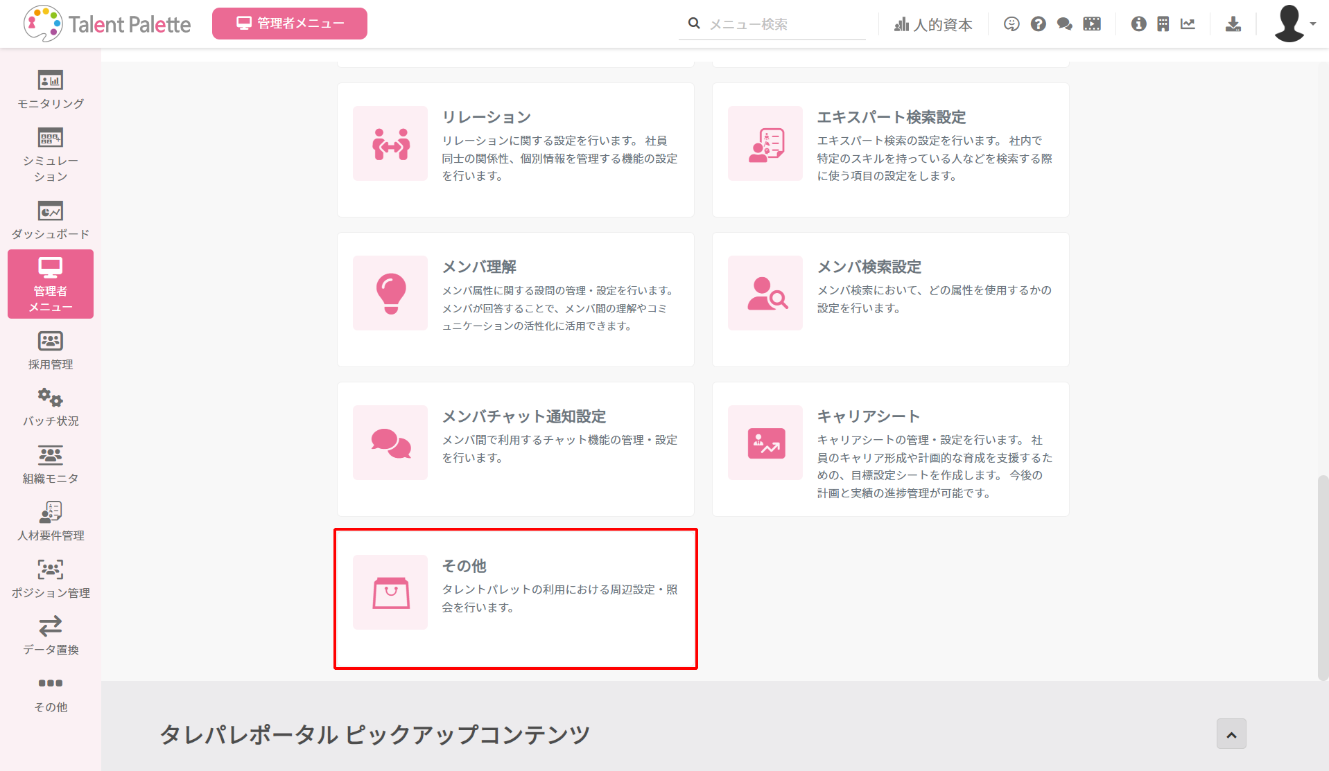 1. TalentPaletteの管理コンソールにログインします。