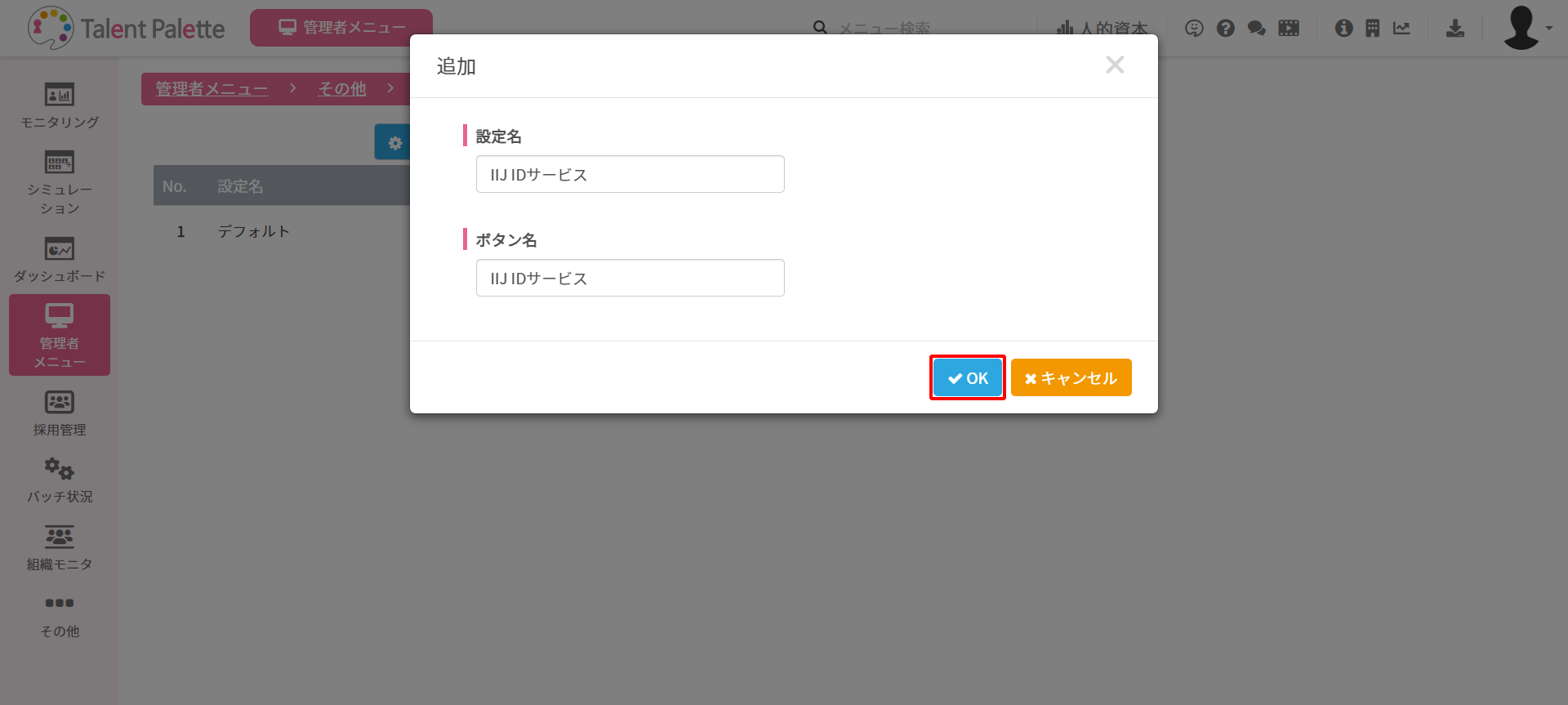 「Talent Palette」との認証連携を設定します。
