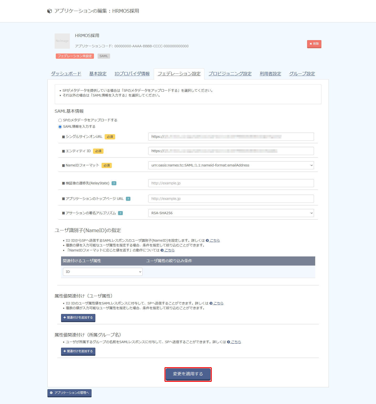 3. HRMOS採用にIDプロバイダ情報を登録する