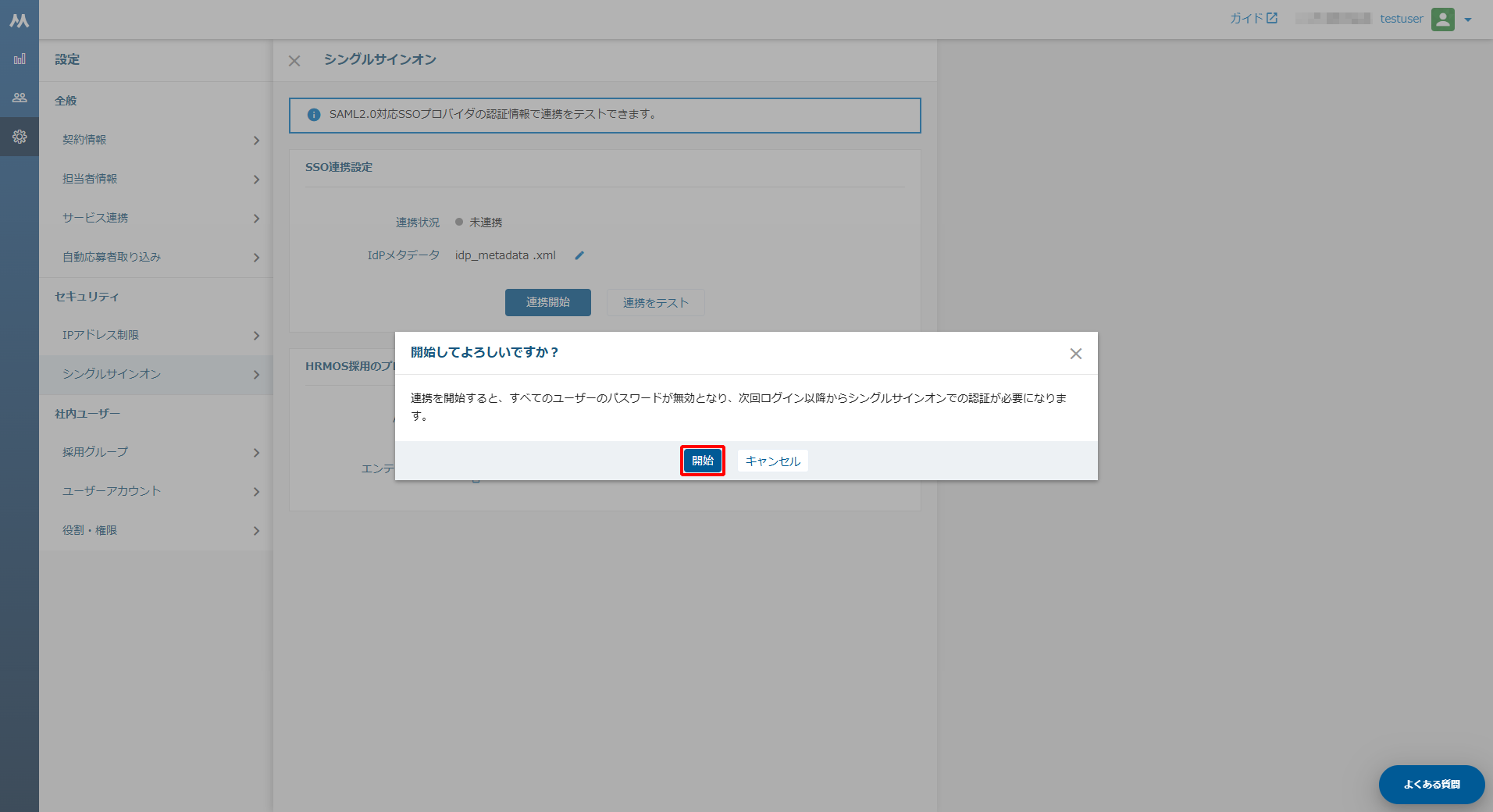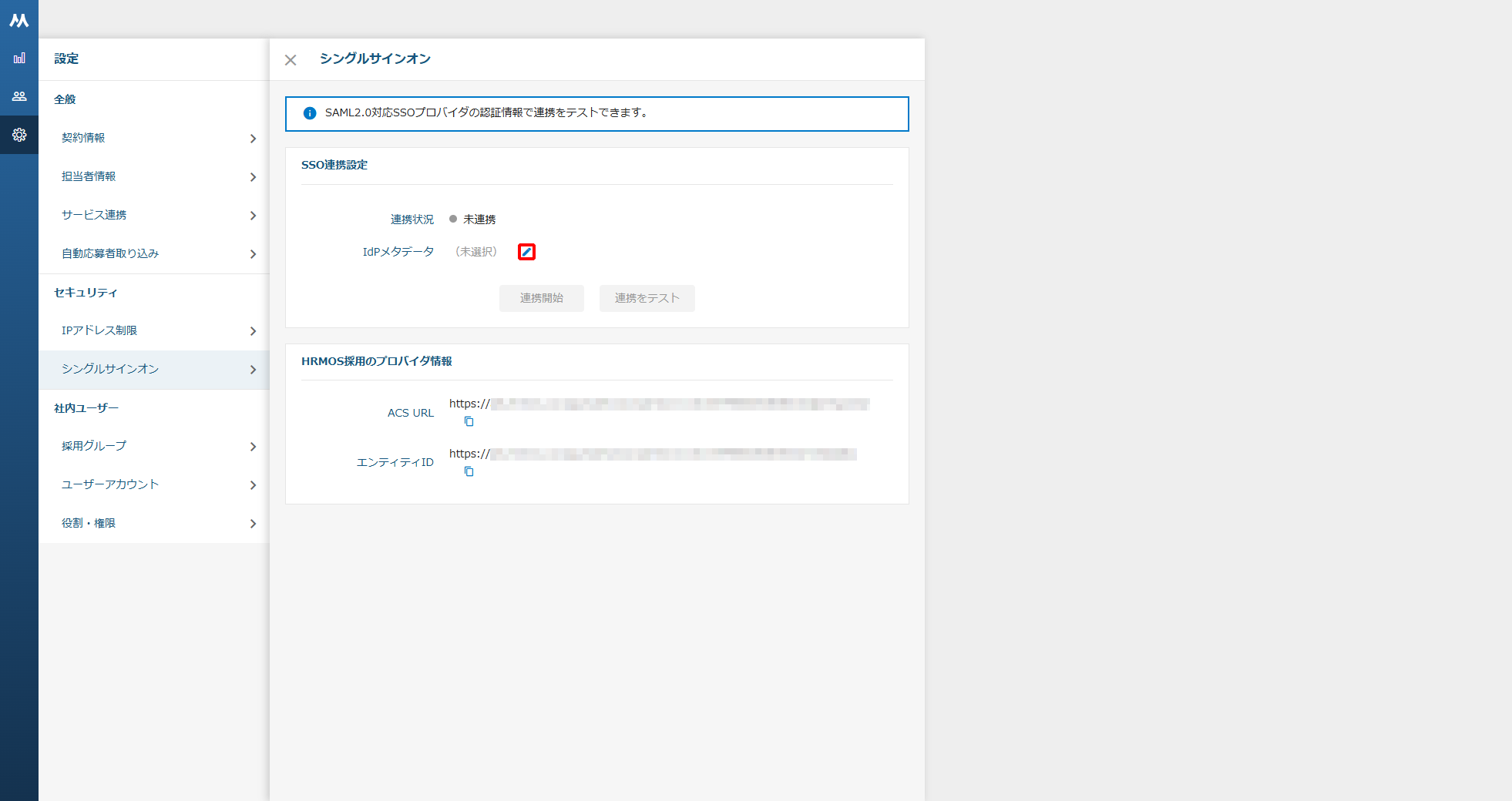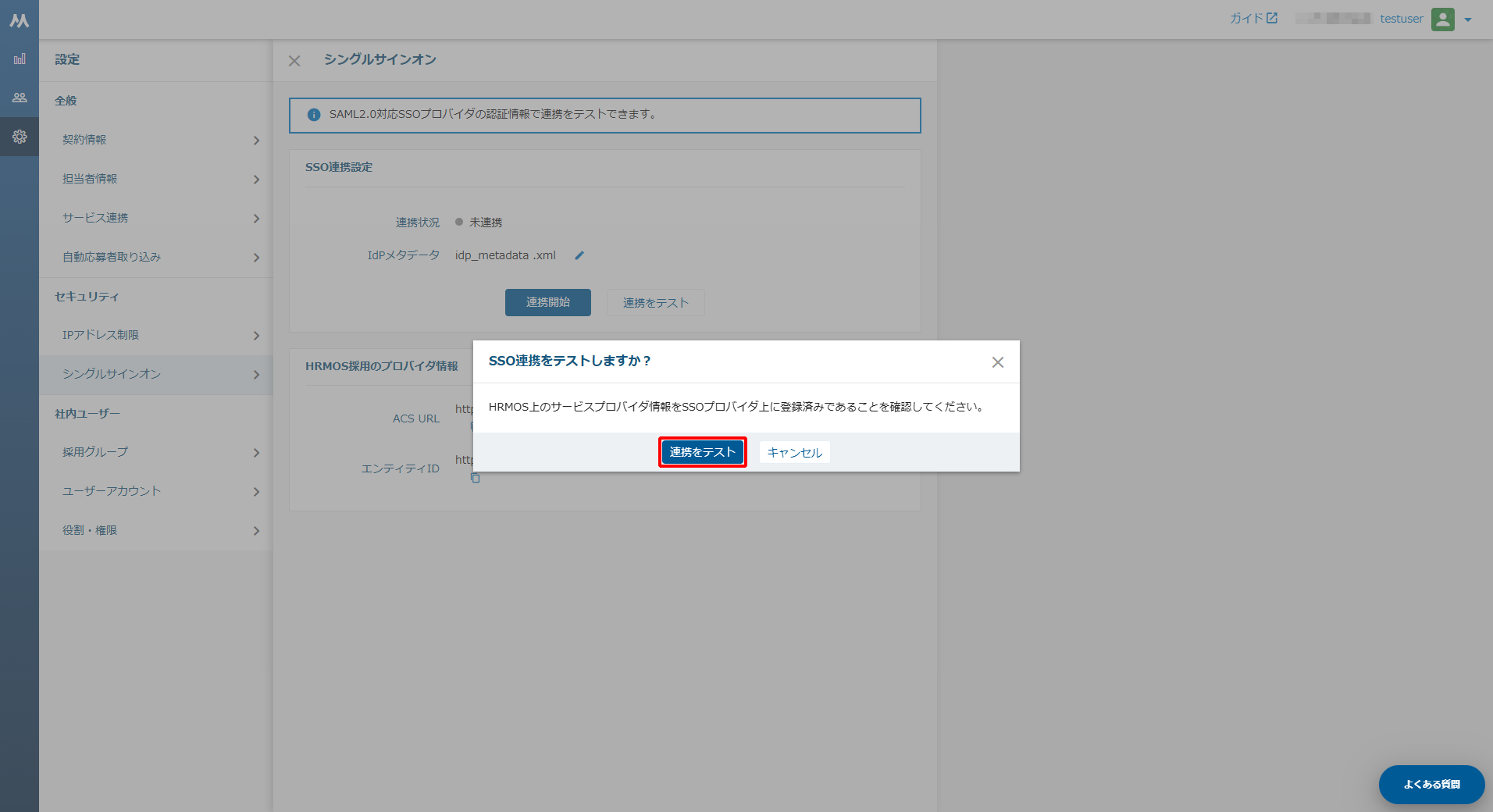 IIJ IDサービスの管理者及びHRMOS採用の管理者でIIJ IDサービスとHRMOS採用にそれぞれログインしていると「SSOテスト」がスムーズに実施できます。