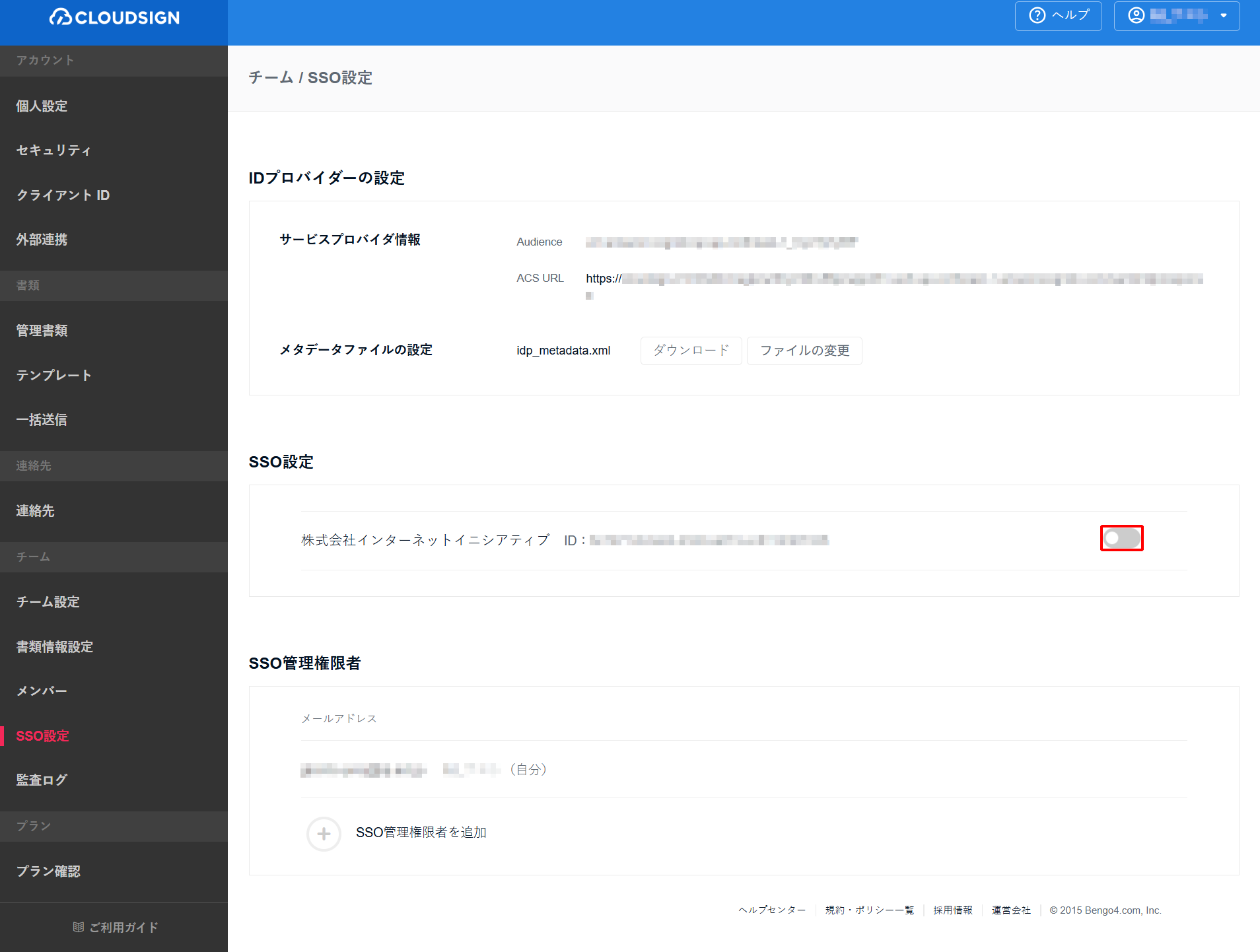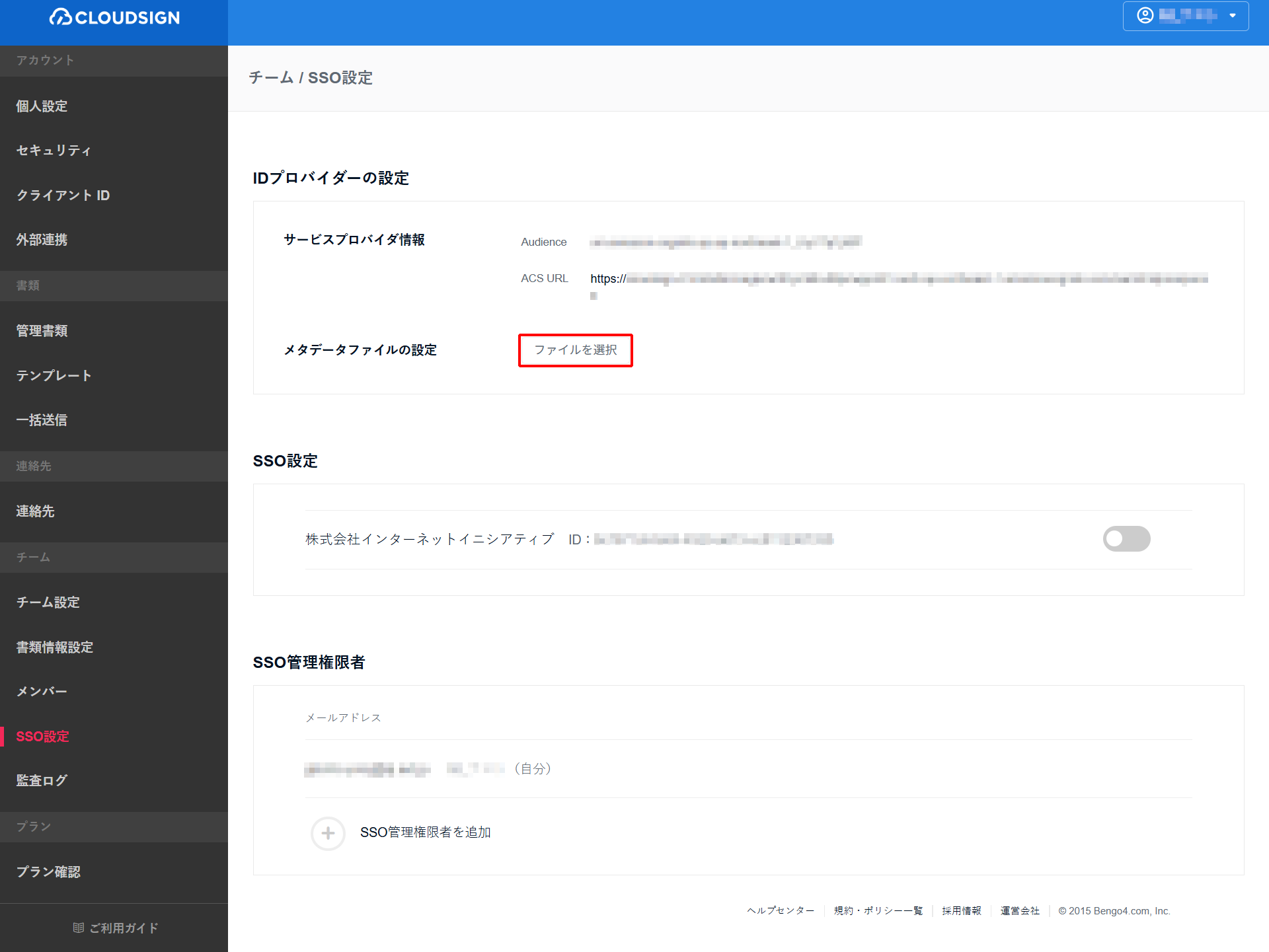- クラウドサインでシングルサインオンするには、ビジネスプランもしくはエンタープライズプランの契約が必要です。