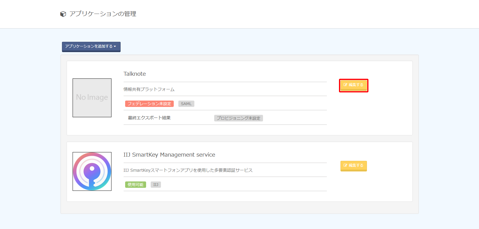 2. アプリケーションの「編集する」をクリックします。
