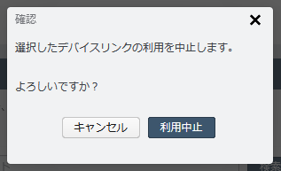 | 「利用中止」ボタン | 指定されたデバイスでデバイスリンクの利用を中止します。 |
