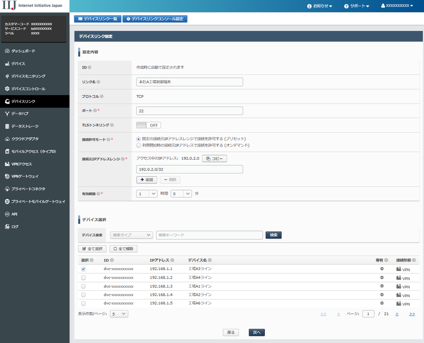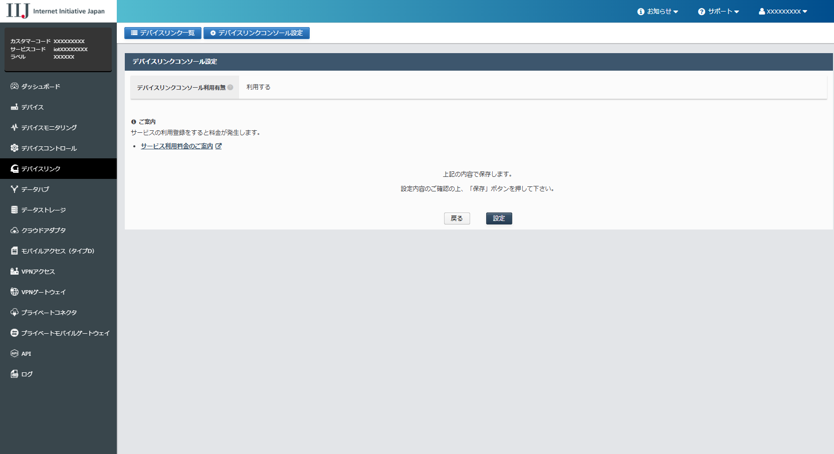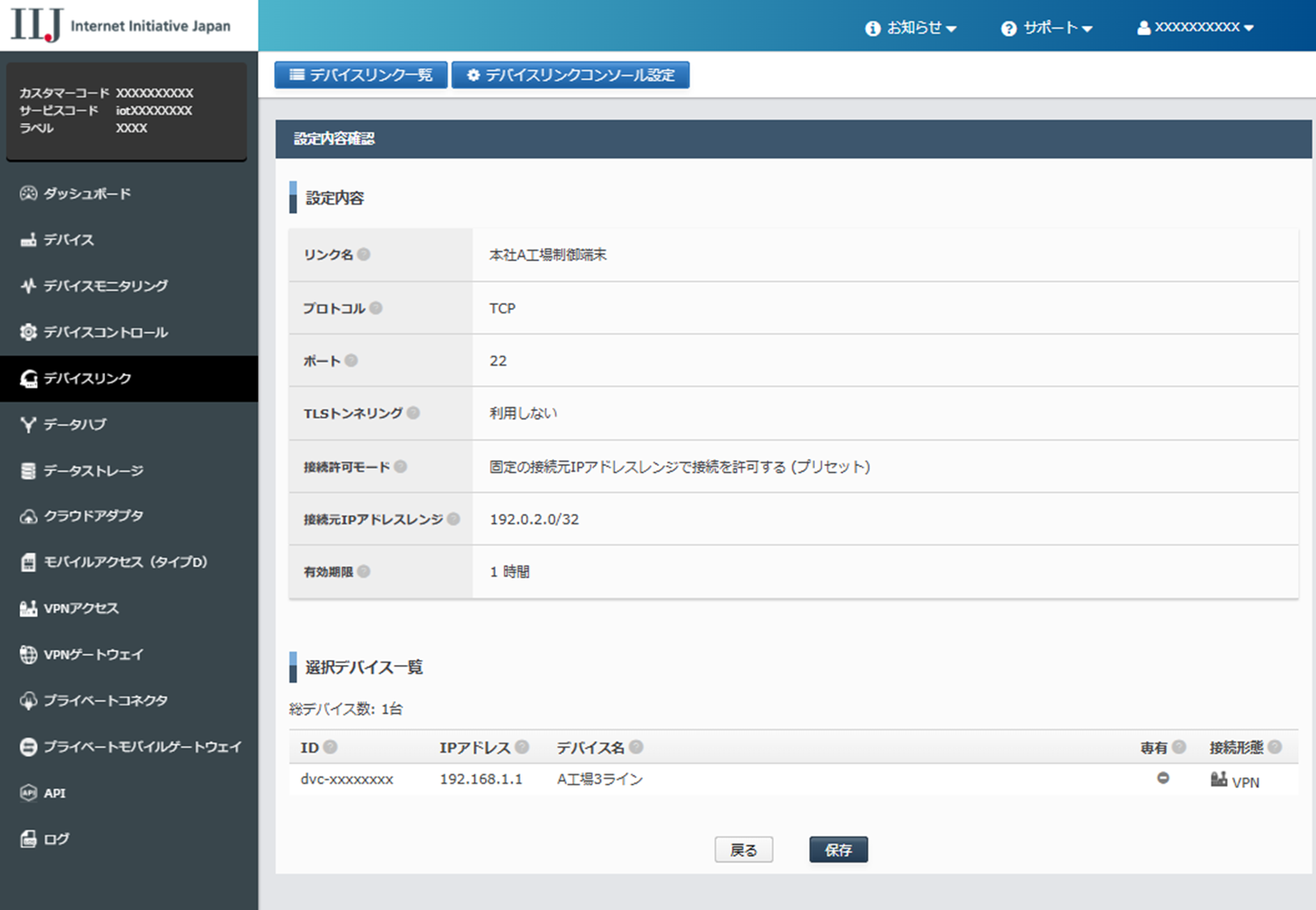 | 「戻る」ボタン | 入力内容を破棄し「デバイスリンク一覧」画面に戻ります。 |