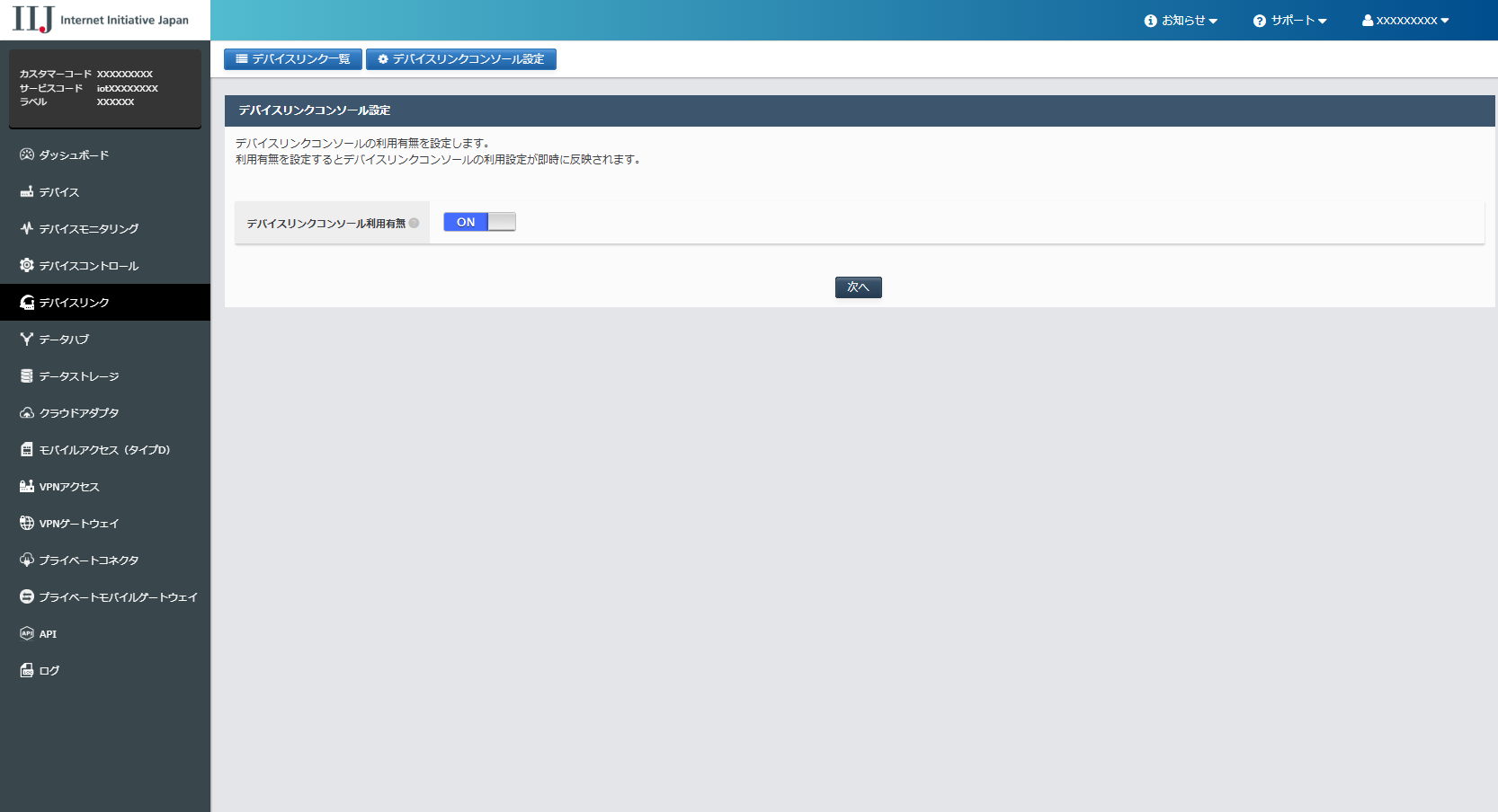 | 「次へ」ボタン | 「デバイスリンクコンソール 設定確認」画面に遷移します。 |