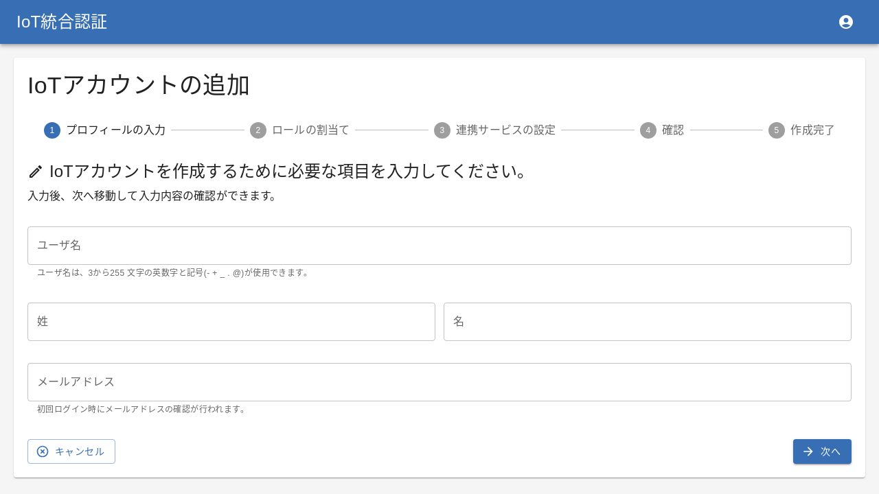 続けて他のIoTアカウントを追加する場合には「他のIoTアカウントを追加する」ボタンを押下し、プロフィールの入力 を進めてください。