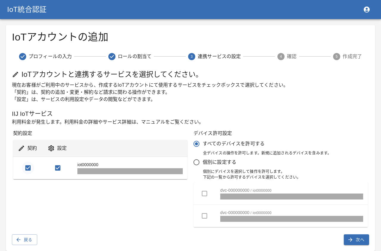 各項目の詳細については IoTアカウントの設定項目 をご確認ください。