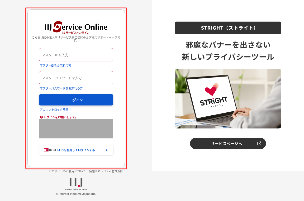 マスターIDとマスターパスワードを入力し、ログインしてください。または、IIJ ID を利用してログインしてください。